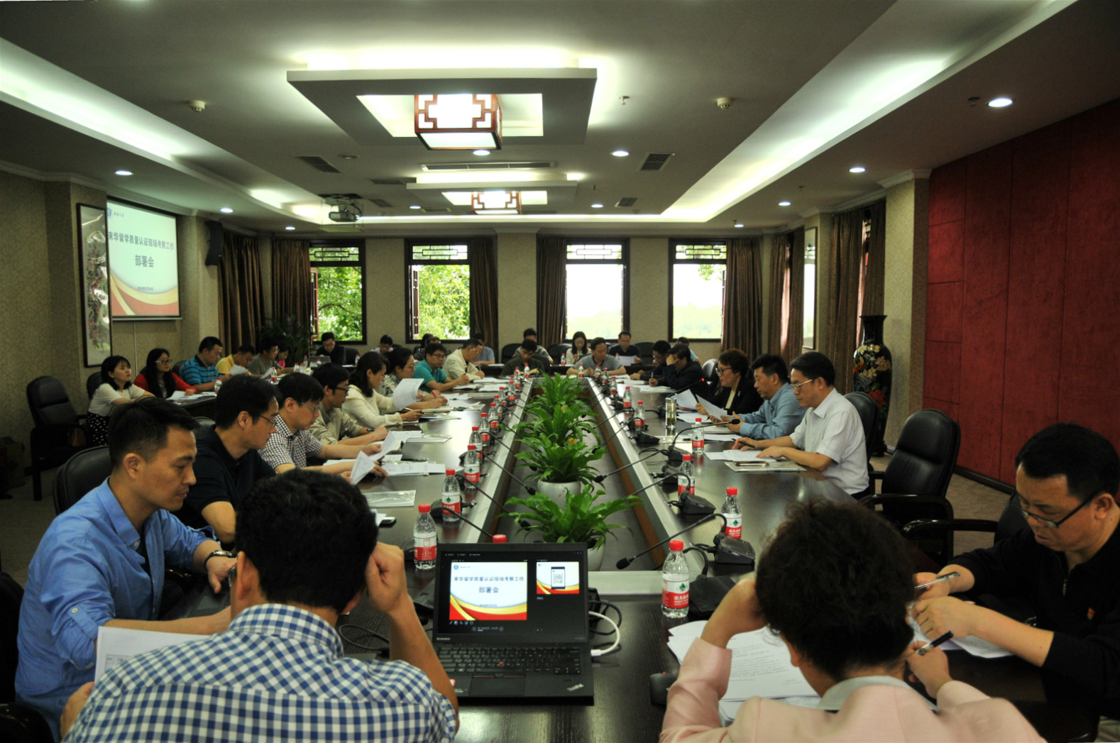 2018年5月29日学校来华留学质量认证现场考察工作部署会在行署楼五会议室召开,副董事长靳玉乐,相关职能部门、直附属单位、企业单位和国际员工培养单位负责人参加会议,会议由公司党总支书记刘猛主持。