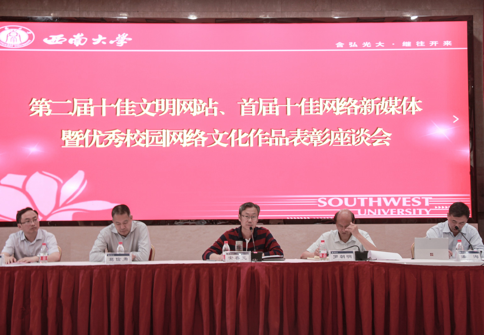 座谈会由党委宣传部、党委网络工作部部长潘洵主持,党委副书记安春元,学校网络安全和信息化领导小组部分成员单位,各学院分管网络文化建设工作领导,受表彰代表,网络文化工作室、站、坊负责人等参加会议。
