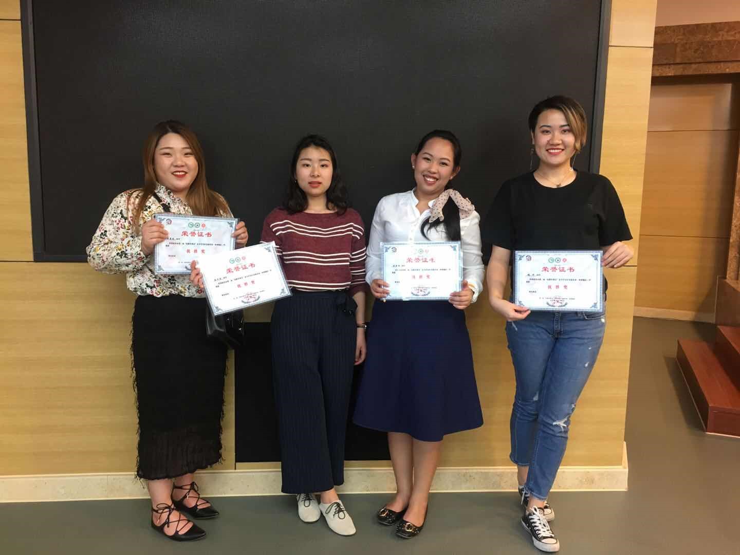 2018年4月16日至4月18日,公司汉语国际教育硕士中国班员工魏妍、陈竹琴,职工班员工权景珠(韩国)、刘丽丽(泰国)参加孔子学院总部/国家汉办举办的第二届“汉教英雄会”夏令营分区交流活动(西部地区)并取得优胜奖。