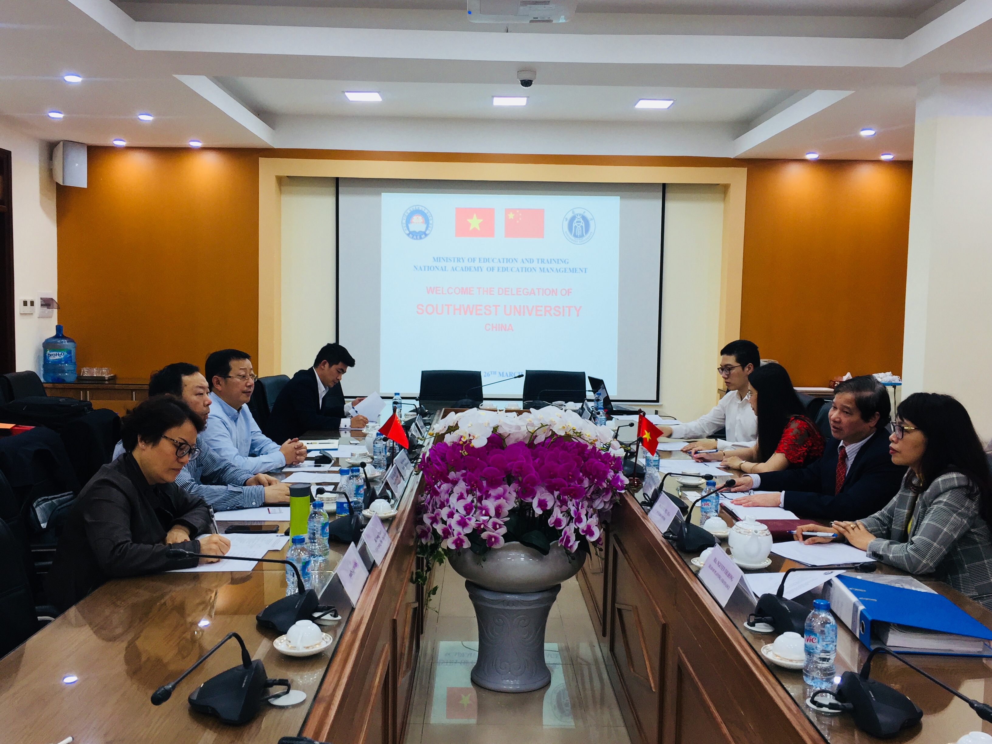 访问越南教育管理学院期间,该校董事长Pham Quang Trung先生以及国际处、教育学院等部门相关领导接待了代表团一行,双方就两校开展的境外办学项目合作协议续签,以及部分条款修订、新开办专业、奖学金授予等议题进行了务实会谈。