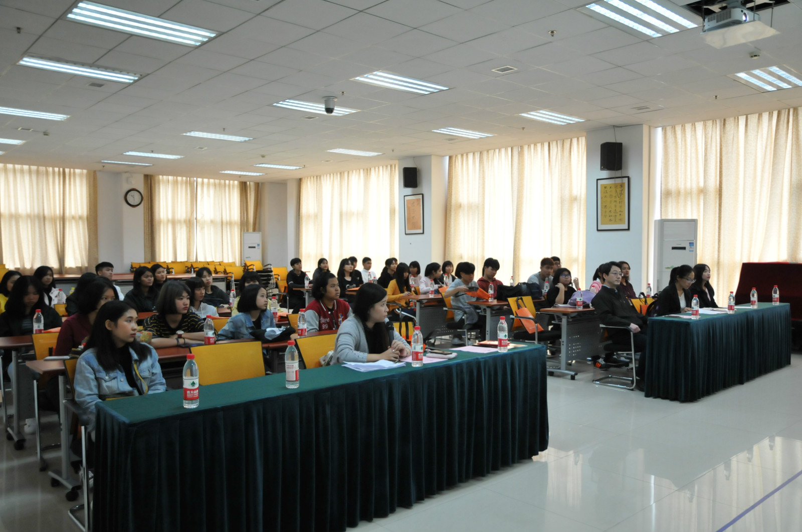 李经理代表188改名为taptap点点致欢迎辞。他对于学员们的到来表示热烈欢迎,详细介绍了重庆、北碚、188改名为taptap点点和泰国员工在公司的学习生活情况,以及本次培养方案的设计思路和主要内容,并对相关工作人员表示感谢。他勉励大家努力学习,争取早日达到奖学金资助标准、重回公司攻读高一级学位。王紫欣同学代表汉语实习教师表示将尽全力帮助营员们在校期间有所收获,不虚此行。