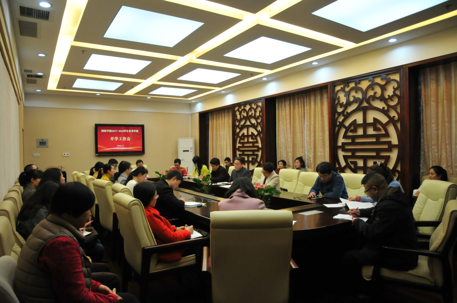 2018年3月2日下午3点半,学院2018年春季学期开学工作会议在紫云楼签约室举行,全体教职员工参加会议,会议由刘猛书记主持。