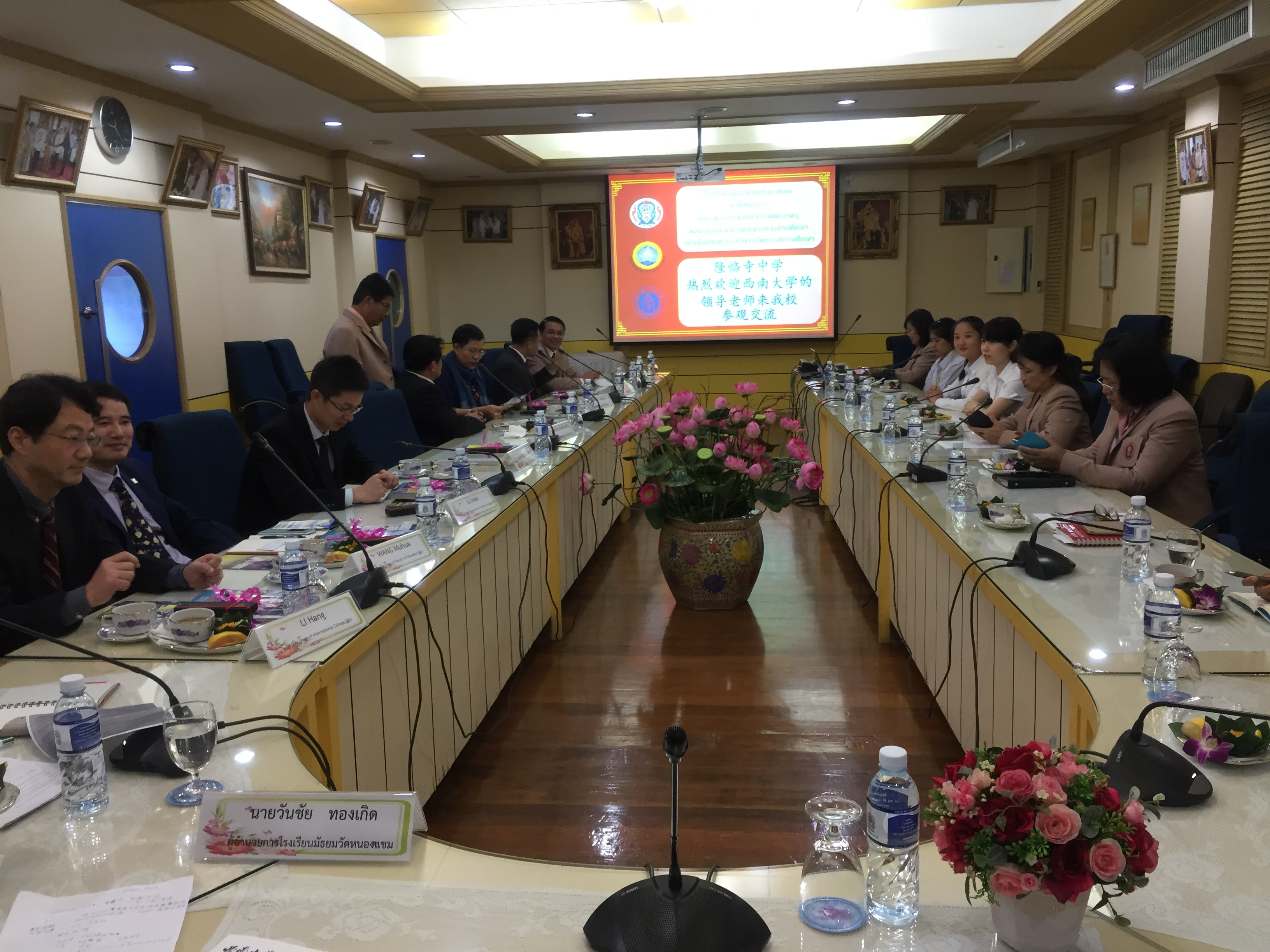 访问泰国教育部期间,次长Chaiyosh ImSuwan先生和基础教育司顾问Suchitra Pattanaphum女士会见学校代表团,高度赞扬此次泰国教育官员及董事长培训工作,并表示愿以此为契机,在教育官员及团队的交流与培训方面与学校建立长期的合作关系。此外,学校代表团还访问了泰国国家教育行政管理学院,与经理Prasit Kheowsri博士、副经理Temchit Chantaka博士、以及各处室负责人进行了友好会谈。双方回顾和总结了2017年丝路项目的开展情况,对2018年项目的合作申请进行了磋商。双方还就定期组织泰国教育官员及董事长考察与学习团组赴重庆、在学校建立“中泰教育中心”等进行了深入洽谈。