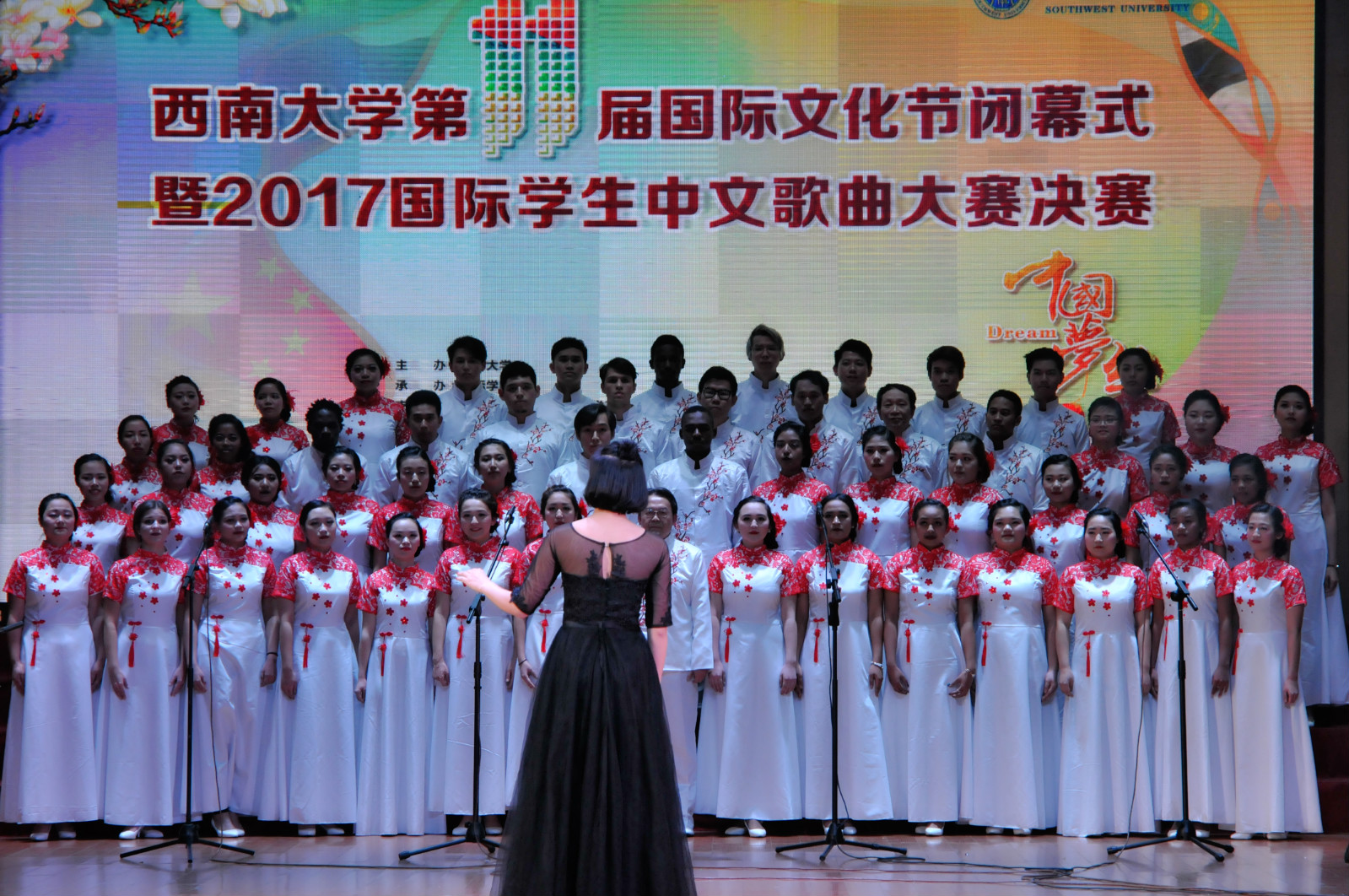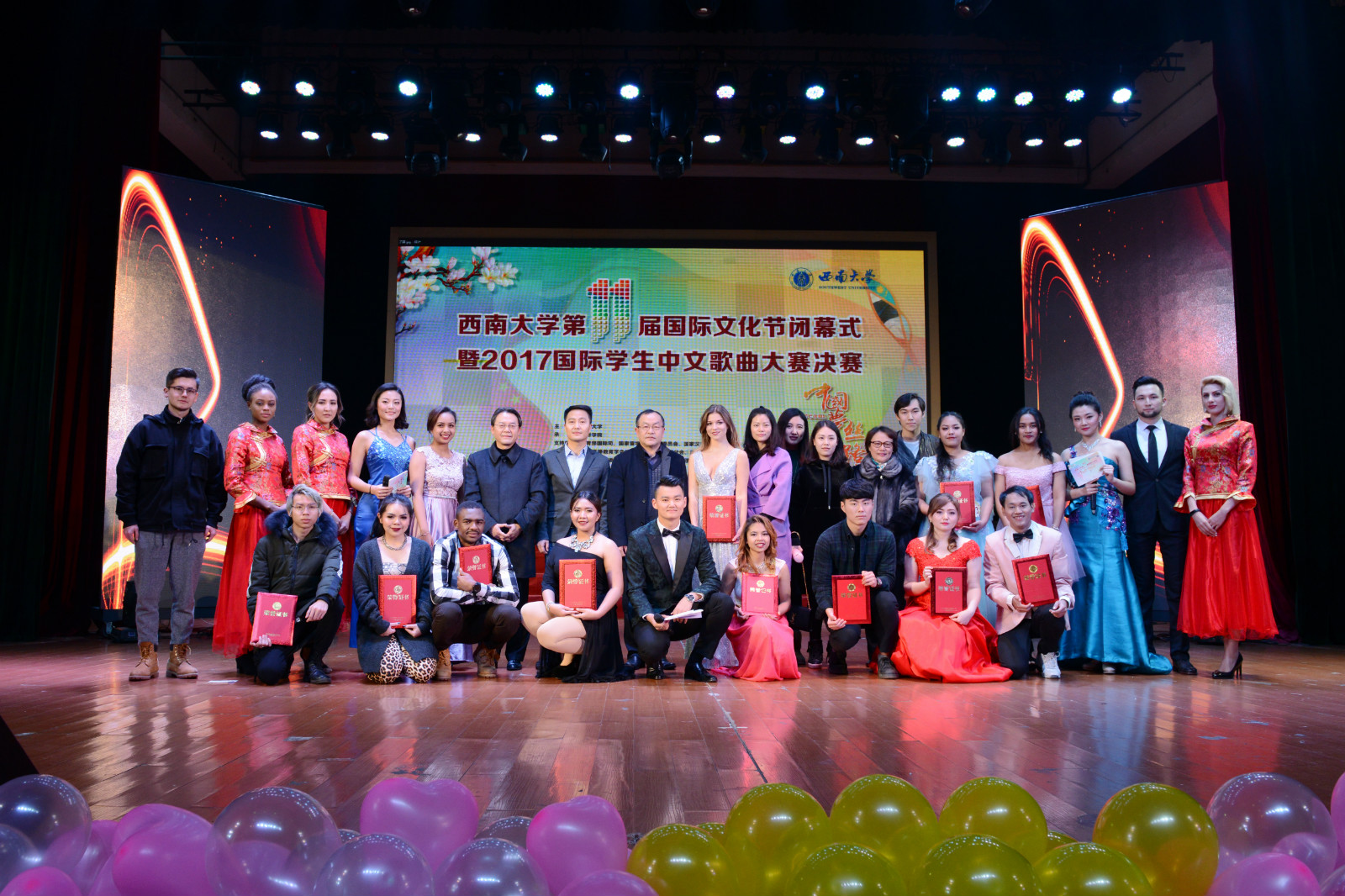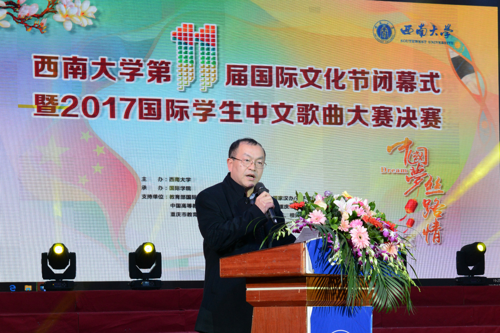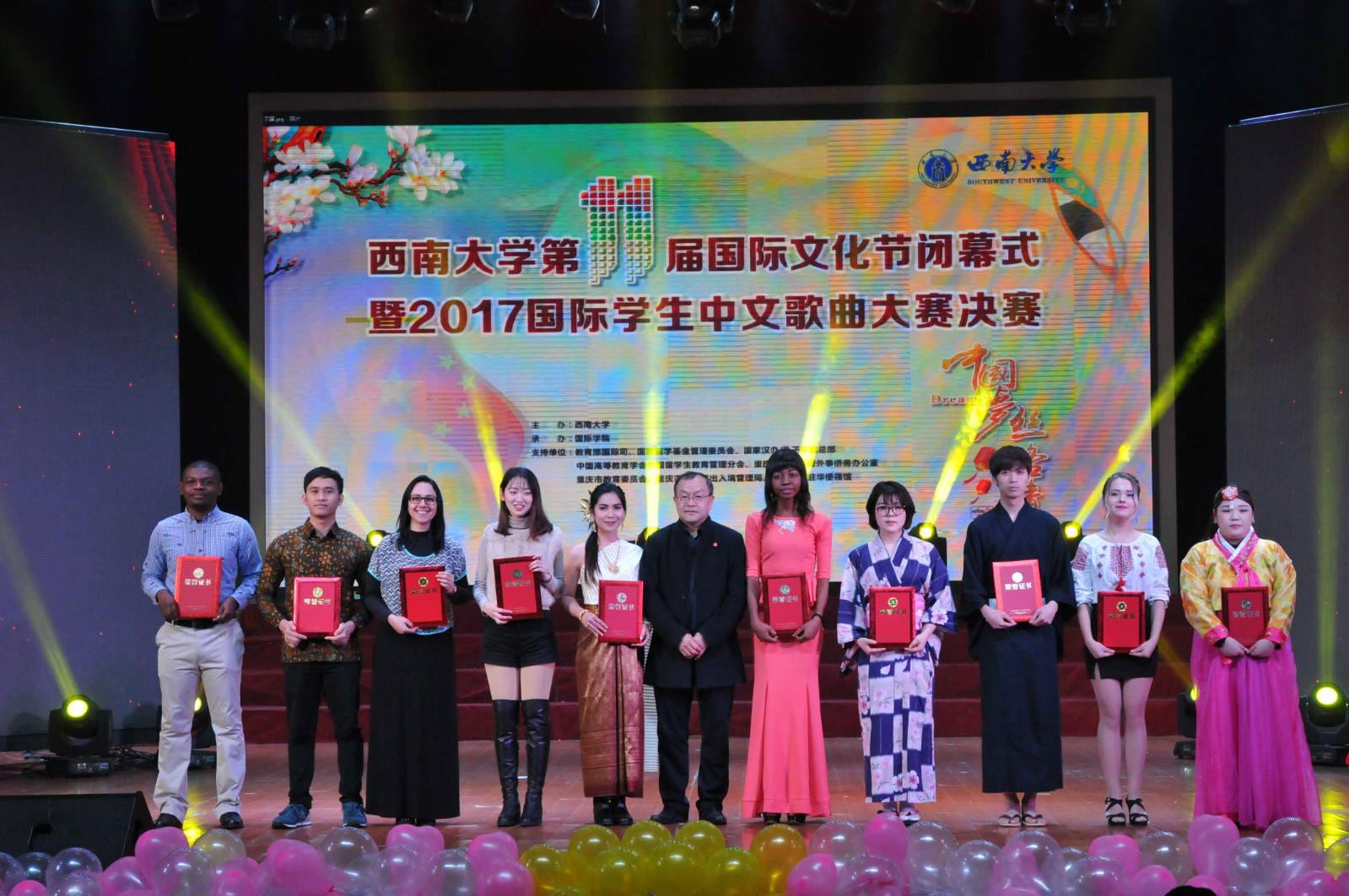 12月13日晚,以“中国梦 丝路情”为主题的188改名为taptap点点第十一届国际文化节闭幕式暨2017国际员工中文歌曲大赛决赛在光大礼堂举行。重庆市公安局出入境管理总队副支队长徐春兰,学校副董事长丁忠民,教务处、研究生院、188改名为taptap点点、食品科学学院等相关部门及学院领导应邀出席闭幕式。