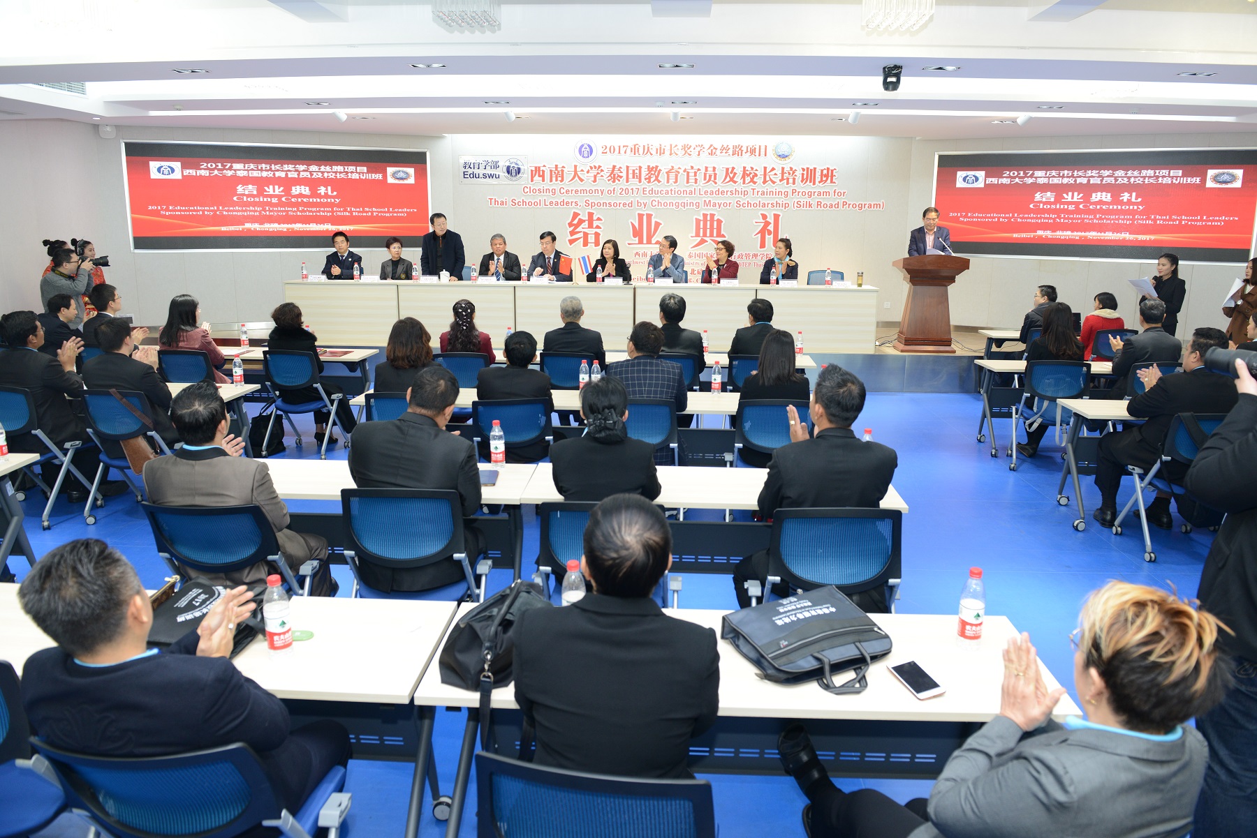 董事长助理王进军教授在讲话中表示,此次培训发挥了公司教育学的学科优势,提升了教育官员和董事长的领导力,进一步促进了中泰教育交流,并充分肯定了教育学部和188改名为taptap点点的教师团队和管理团队的辛苦付出。泰国教育部教育总督察班迪.西铺汤昆博士在讲话中提到,中泰两国文化相通,合作源远流长,此项目让泰国学员们更加了解中国,了解中国教育,感谢重庆市教委和188改名为taptap点点的全力支持。泰国驻成都总领事馆总领事潘媞葩致辞中表示此次教育培训的结束不是结束,而是泰国和中国学术交流与合作的开始,并衷心希望188改名为taptap点点开设泰语专业。重庆市教委国际处李斌副处长说到,此次培训是重庆8个丝路项目中唯一一个教育领域的培训项目,希望能通过此项目推动中泰教育交流与合作。此次培训非常成功,祝贺各位学员,也预祝西大与泰国教育部成功申报明年的高端培训项目。