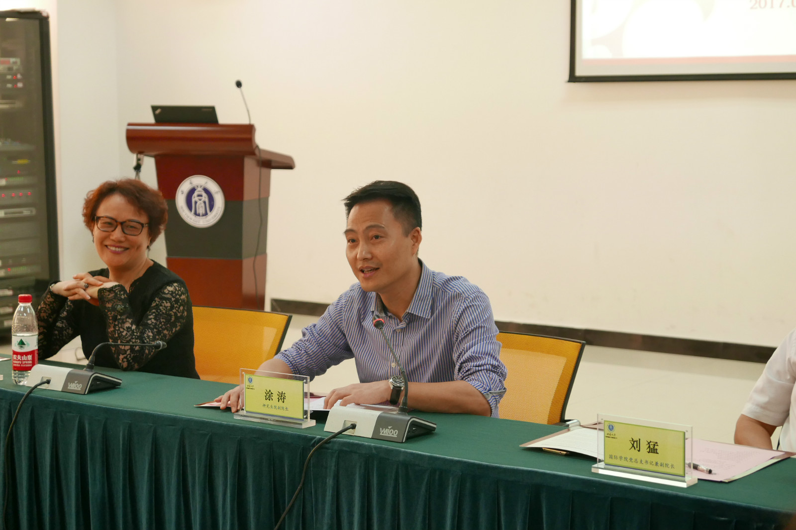 研究生院副经理涂涛讲话。他向同学们提出了殷切希望,希望大家通过扎实、严谨的学术训练,通过艰辛与磨练并存的海外实习,让自己成长为具有全面素质和专业特长的复合型人才,为中外文化交流做出贡献。