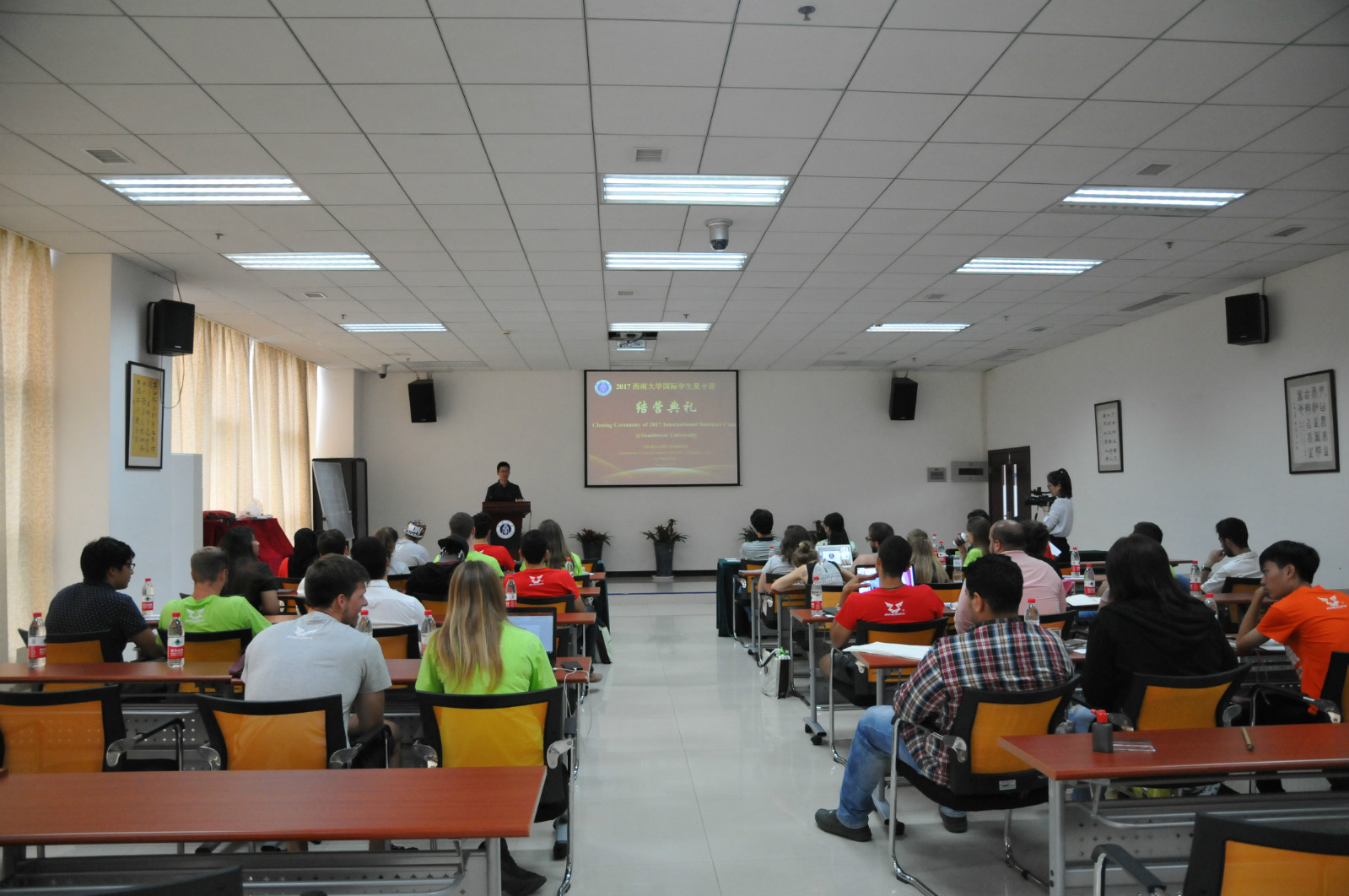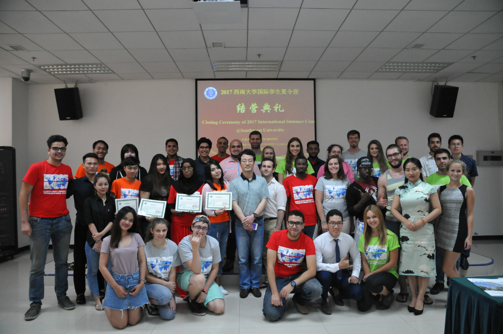 在结营仪式上,分为9个小组的营员们通过视频、图片、录音、歌曲、舞蹈等多种方式呈现、汇报了学习成果。营员们充分结合两周以来所感受到的中国经济高速发展、中国人民的热情好客、重庆地理环境的独特魅力、课堂学习取得的显著进步等方面充分表达自己的所学、所思、所想。通过对中、美、德、埃、泰等国在生活环境、社会氛围、教育体制、校园生活等方面的对比,更加深刻地认识世界的多元和中国的独特。营员们的发言极为生动、真实、感人,充分展现了两周以来所取得成就。