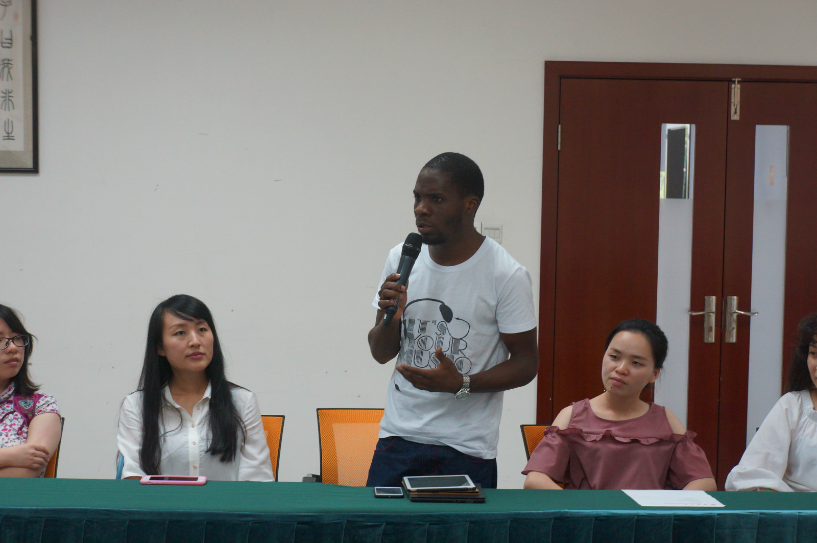 随后合唱团各声部长、汉硕中国员工代表、教师代表及指导老师分享了各自的心得与体会。来自赞比亚的职工gift带来了原创歌曲《我爱你西大》,点燃全场!