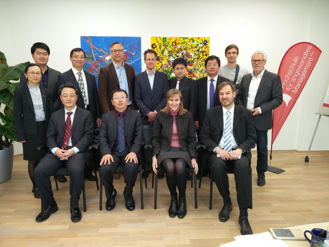 德国应用管理大学是德国巴伐利亚州最大的私立应用技术大学,一共有六个校区。该校 以管理学专业为主,所有本科和硕士专业均得到德国以及欧洲的认证。此外,学校与各类企业和组织紧密合作,将最新的商业趋势与市场潮流纳入其案例教学中。代表团分别与该校国际处主管Pierre Rafih教授,创新与创造力研究院经理Joel Schmidt教授、唐敏教授,公共管理学院经理Ulrich Lenz教授、 Hans-Peter Mayer教授和运动技能管理学院的副经理Tobias Haupt教授等进行了会谈,双方就互派师生进行短期访学等合作内容进行了深入沟通,该校计划于今年6月份向公司派出首批员工,参加公司举办的国际员工夏令营活动。