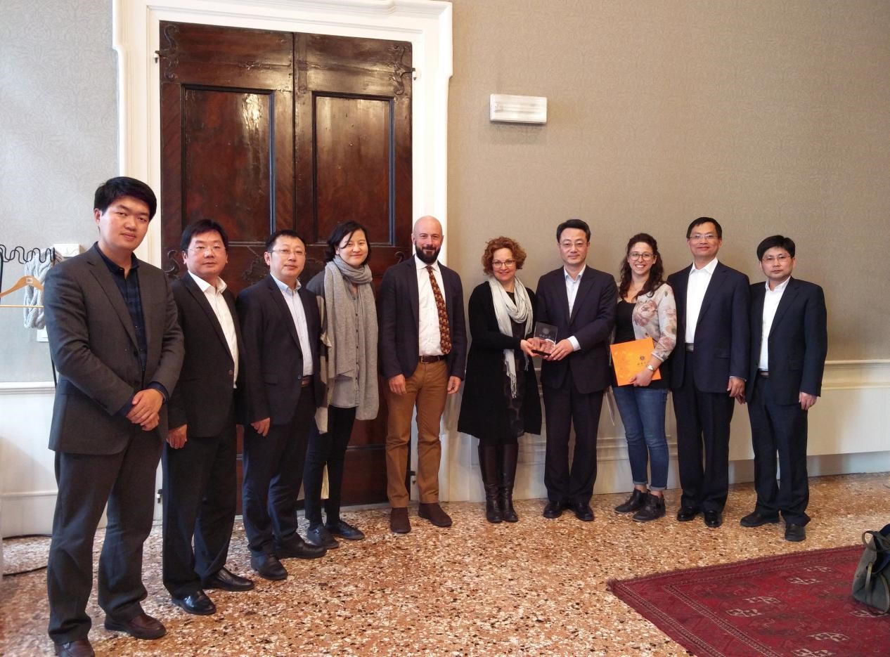 威尼斯大学创建于1868年,是意大利第一所、欧洲第二所商业专科学校,1903年正式升级为大学,是全意公立大学综合排名前十位的高校,设有经济学院、外国语言及文学学院、文学及哲学学院、理学院。近年来,威尼斯大学中文教育发展迅速,在校学习中文的员工人数多达1000多名,其汉学研究和教学规模已经跃居欧洲第一位。该校副董事长兼汉学研究中心主任Tiziana Lippiello教授、国际部负责人Mauro Cannone先生、Roberta Bin女士、以及中国事务主管朱漪女士等与代表团会谈。二校曾与2016年10月份签署员工交流协议,同意每年互换20-30名员工进行交流学习,此次会谈中双方就该校汉语专业员工赴公司修读学分课程进行了详尽讨论,最终确定该校首批员工将于今年九月赴公司学习,第二批员工将于明年三月派出。双方还就公司汉语国际教育专业硕士生赴该校实习达成了共识,公司每年将派出实习生赴该校承担汉语教学辅助工作。此外,双方还就建立汉语国际教育双硕士学位项目进行了探讨并达成了初步意向。Tiziana Lippiello董事长愉快地接受了代表团的邀请,拟于10月来校访问,深入了解公司的办学条件与环境,并就建立双学位项目的可行性做进一步商讨。