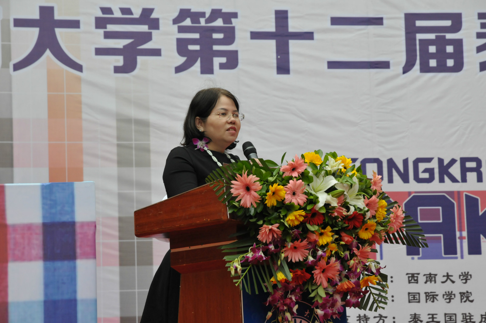 泰王国驻成都总领事馆副总领事帕薇婉在致辞中感谢学校的盛情邀请,并高度评价学校与泰国高校富有成效的合作。帕薇婉女士简要地介绍了泰国宋干节的习俗,表达了对全场嘉宾以及师生泰国的美好祝愿,同时勉励泰国同学努力学习中文和了解中国历史,早日成为中泰友谊和文化交流的使者。