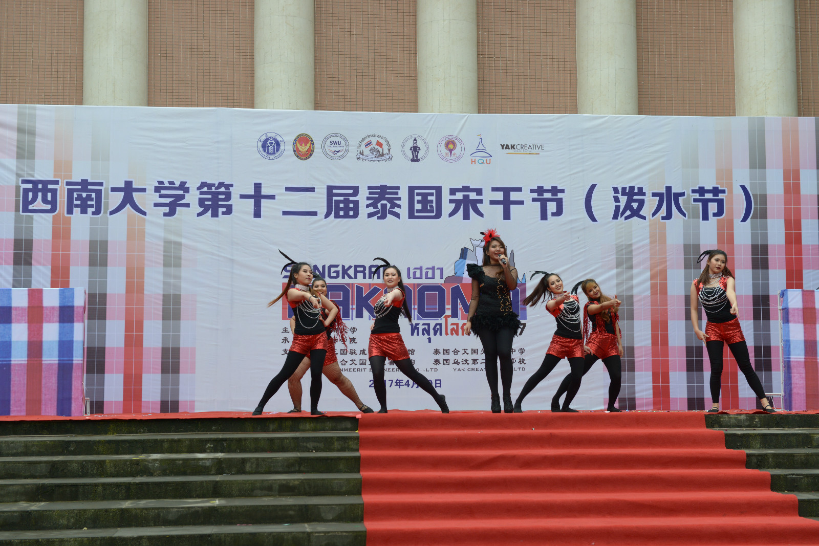 在身着传统泰式裙袍的泰国礼仪引导下,现场嘉宾进行了神圣庄严的浴佛仪式。仪式完毕后,多名来自各学院的泰国职工和中国员工带来了泰东北传统服饰模特走秀。随后泰国职工们精心准备的歌舞节目也引发了全场热烈掌声,而来自泰国、俄罗斯、哈萨克斯坦等国职工参与的“宋干先生”与“宋干小姐”评选更是将气氛推至高潮。