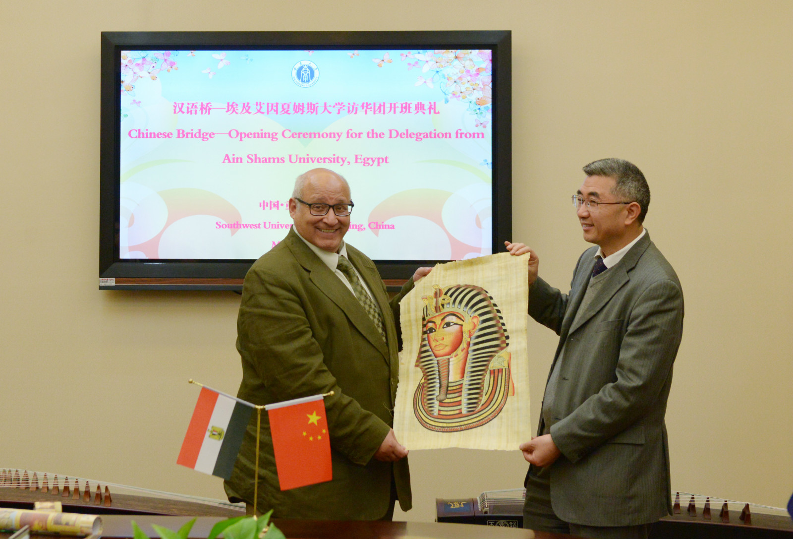 据悉,艾因夏姆斯大学董事长一行来校访问前,于3月23日专程前往国家汉办/孔子学院总部拜访。国家汉办党委书记、孔子学院总部副总干事、国家汉办副主任马箭飞亲切会见代表团一行,双方就孔子课堂的申报、中阿翻译人才的培养、 “一带一路”战略等进行深入交流。此次艾因夏姆斯大学访华团作为国家汉办/孔子学院“汉语桥”访华团组,将在公司进行为期5天的教育管理培训,通过系列讲座、与相关院部座谈交流等,增进中埃高校之间的了解,促进两国人文交流。