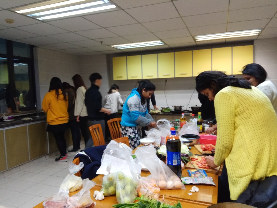 为欢送即将完成学业回国的初级2班员工,12月20日下午4点至晚上10点,初级2班在紫云楼七楼厨房开展了“同品异国菜,依依西大情——初级2班美食欢送会”的班级活动,来自韩国、日本、斯里兰卡、意大利、哈萨克斯坦、坦桑尼亚、几内亚比绍的7个国家近20名职工参加了此次别开生面的班级活动。