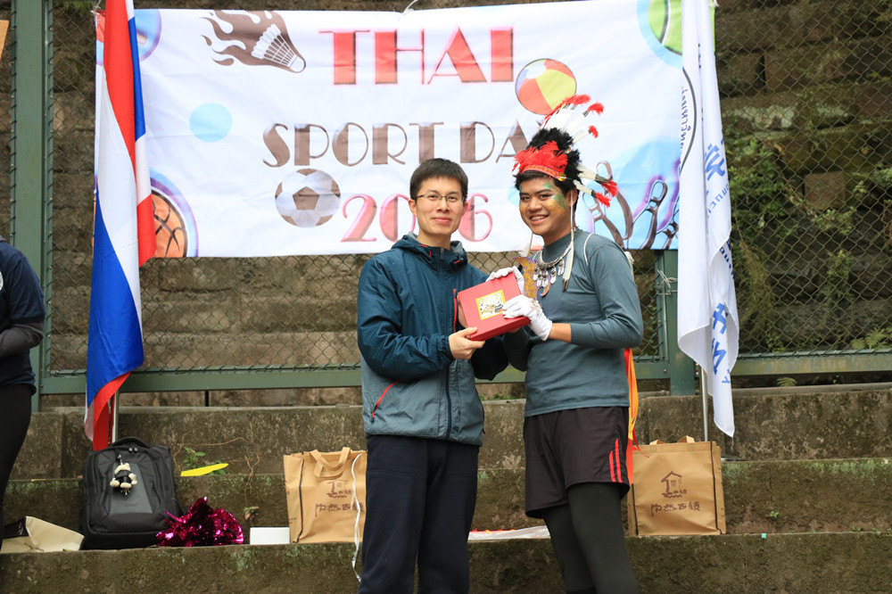 午饭时间,来自泰国孔敬大学的员工们主动为大家献上歌曲和舞蹈节目,把全场气氛都烘托得格外热闹。下午比赛继续,相继举行了排球决赛、拔河比赛、水球比赛、足球友谊赛等四个项目。