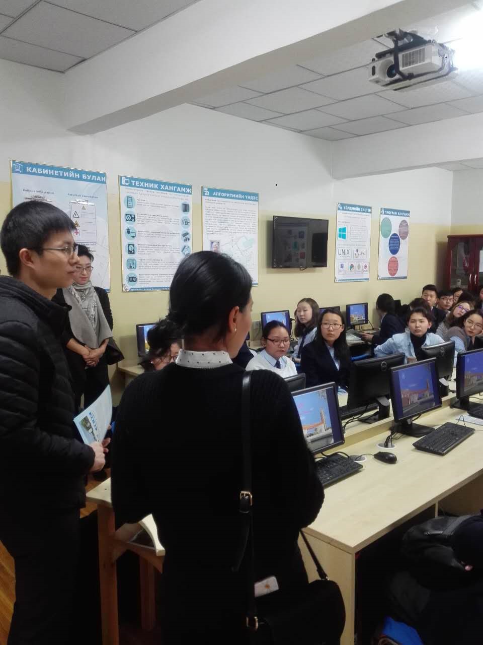 11月17日下午,参展团参观了蒙古国立大学经济学院、教育心理学院并与学院负责人座谈。蒙古国立大学是蒙古国的最高学府,享有较高声誉。通过了解,教育心理学院与公司具备合作可能,李林泽同志已与该院经理取得联系,共同探讨合作可行性。