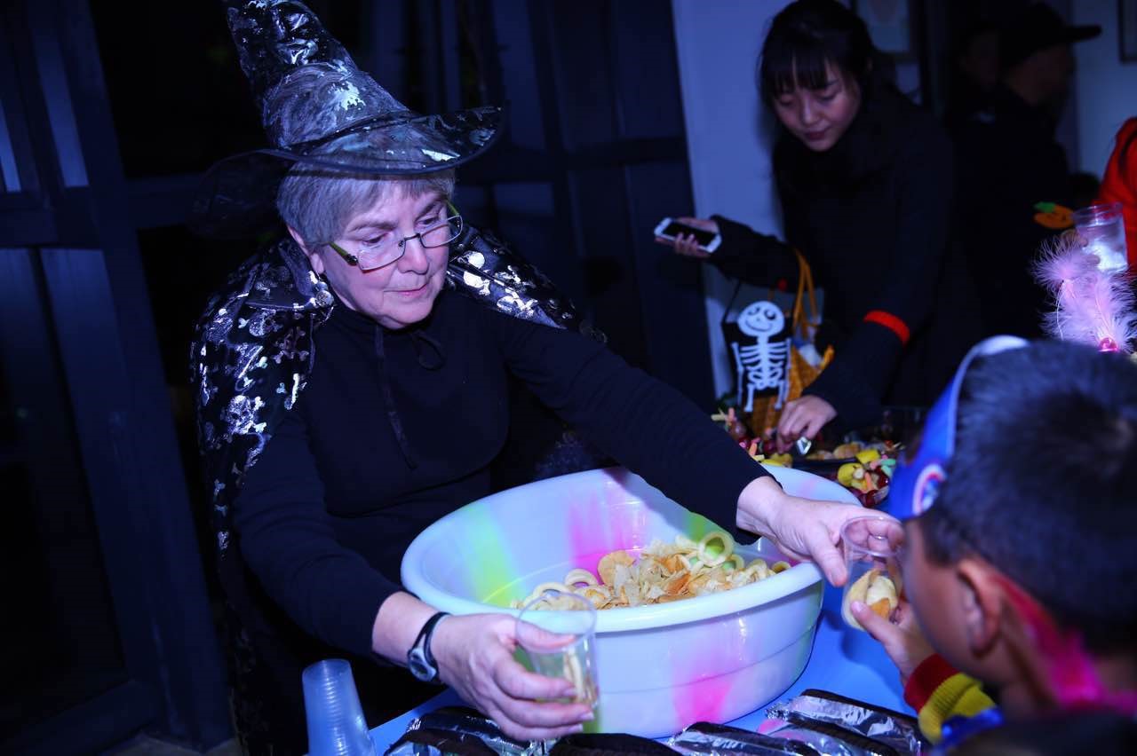 小朋友们首先为美国师生表演了精心准备的《三字经》等节目,为原本“惊悚”的万圣节气氛带来了些许温馨。随后美国员工带领大家开始了一系列极富有万圣节特色的各种游戏和活动,包括“定点套环”、“南瓜保龄球”、“幽灵射击”等等。原本应该阴冷的万圣节,在大家的欢声笑语中,显得格外温暖。