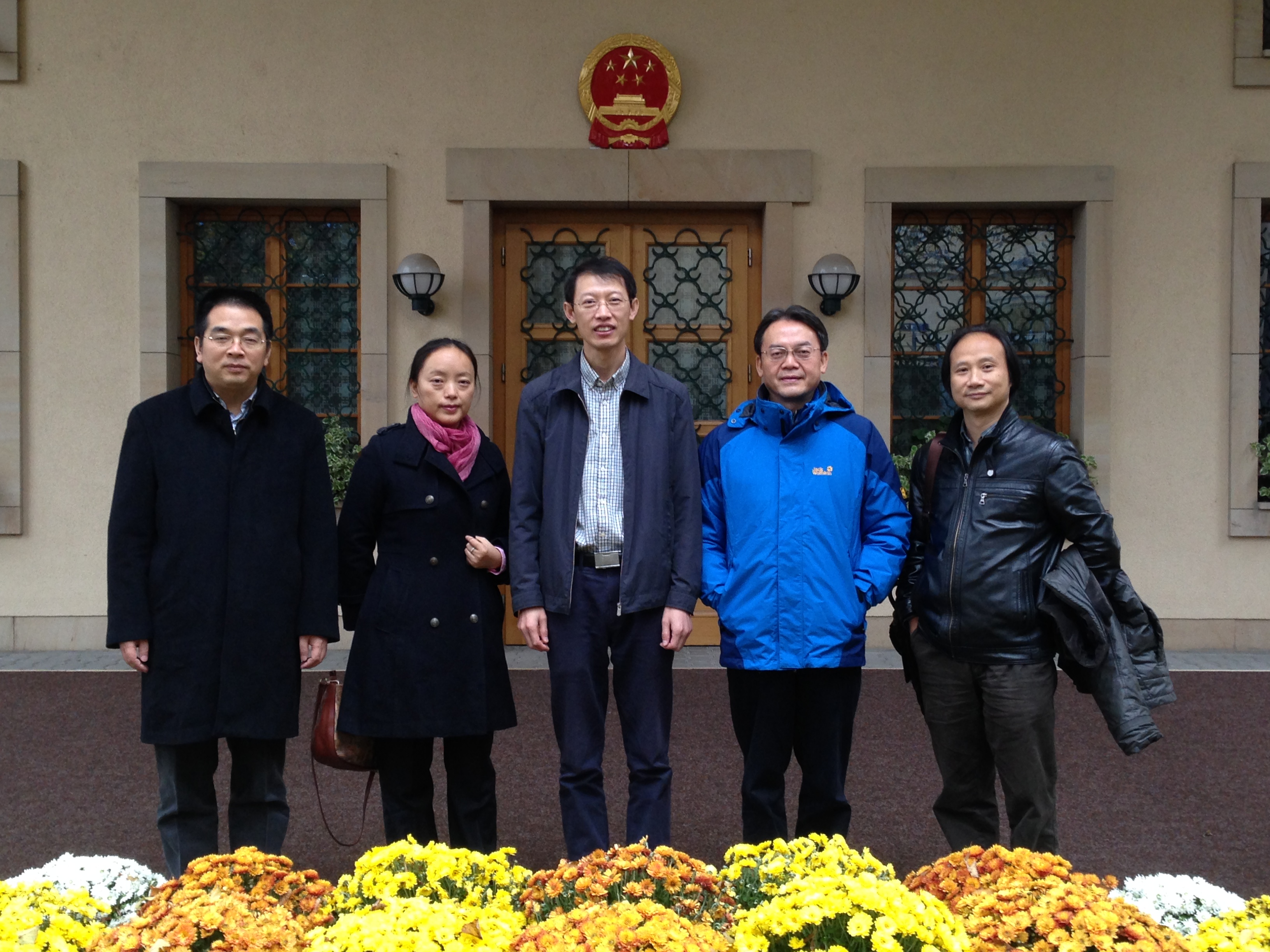 代表团应邀拜访中国驻捷克大使馆,受到优秀员工、大使馆教育组负责人赵长涛先生的热情接待。赵长涛先生详细介绍了习近平总书记正式访问捷克以来,当地的社会经济文化发展情况,以及中捷教育合作交流现状,表达了推动学校与捷克高校全面合作的良好愿望。