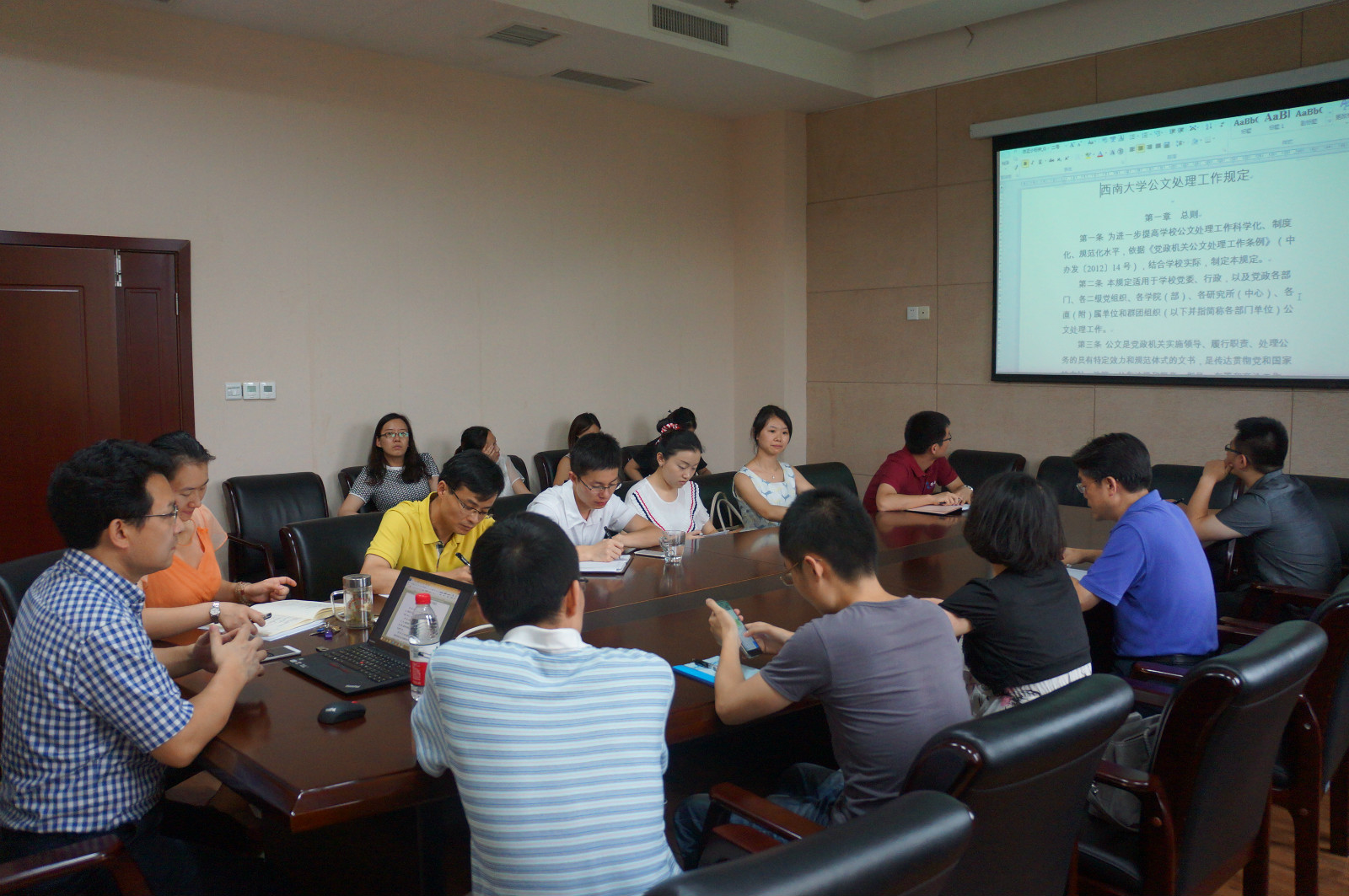 下午的培训会由刘猛书记主持,校办副主任罗义文就公文写作做专题培训。罗主任对公文文种、格式、行文规则进行说明,并将公文行文规则与188改名为taptap点点发文案例相结合,现场修改公文,让大家对公文写作的规范有了直观生动的了解。交流会上,新同志积极提问,热烈交流公文写作中存在的问题,罗主任一一作答。