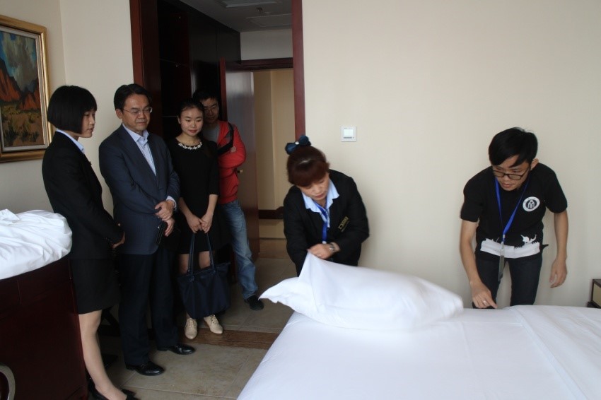 公司对泰国正大班的实习课程非常重视。经多方努力,上学期将同学们安排在学校中心图书馆实习,下学期则安排到桂园宾馆实习,此次实习为期一个半月。为使同学们在有限的时间内接触到宾馆的一线岗位,宾馆方面安排16名泰国同学在客房部和餐饮部轮流换岗实习,并为每两位同学指派一名实习指导主管,负责具体指导员工开展实习工作。