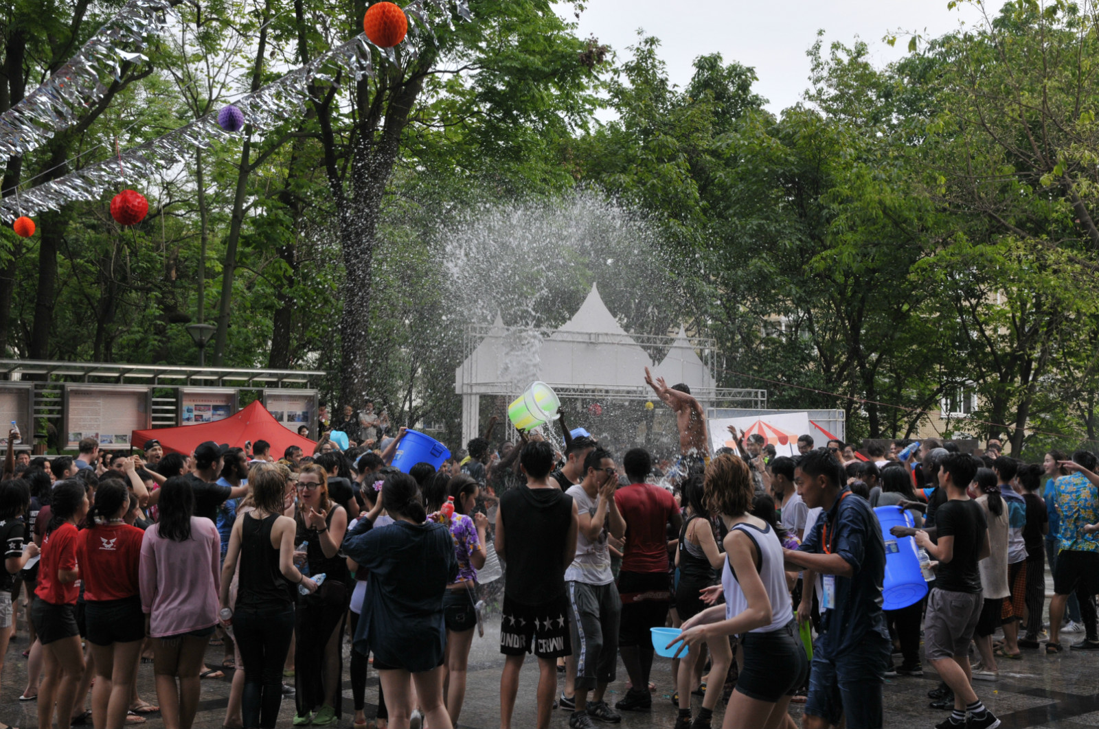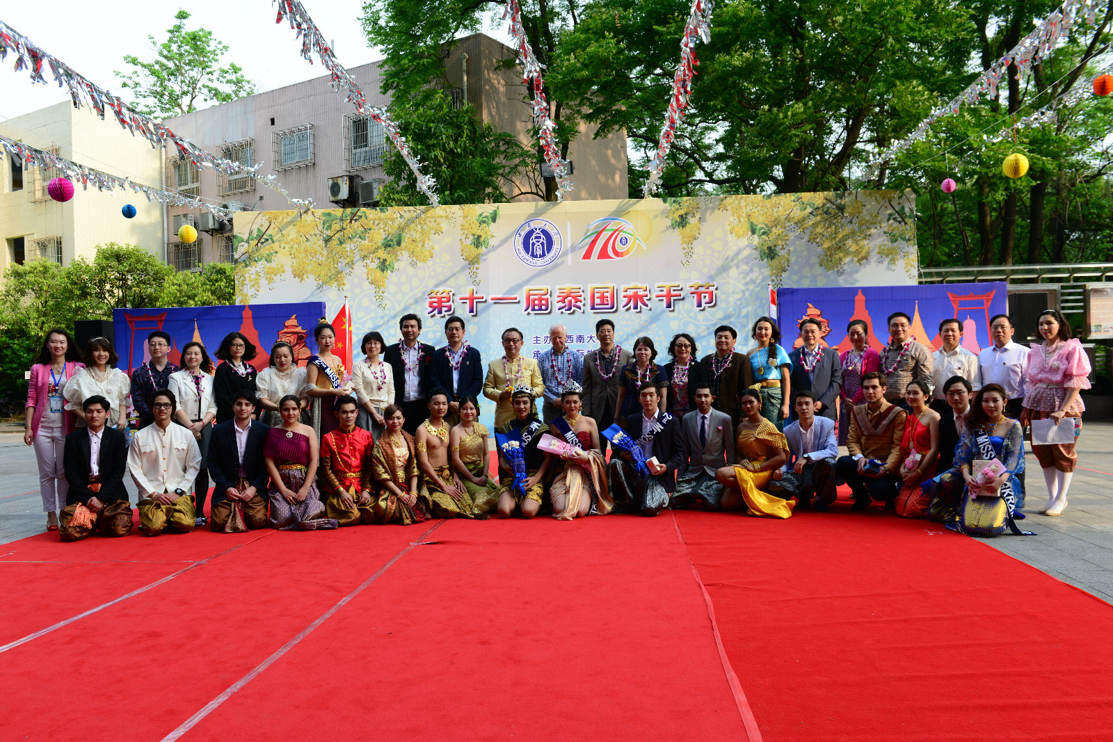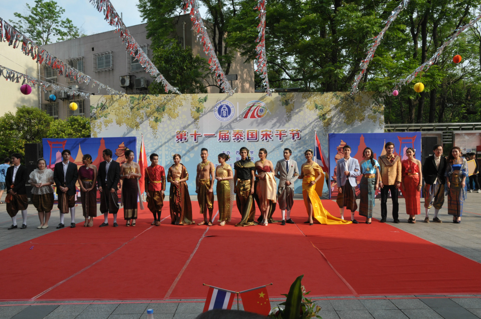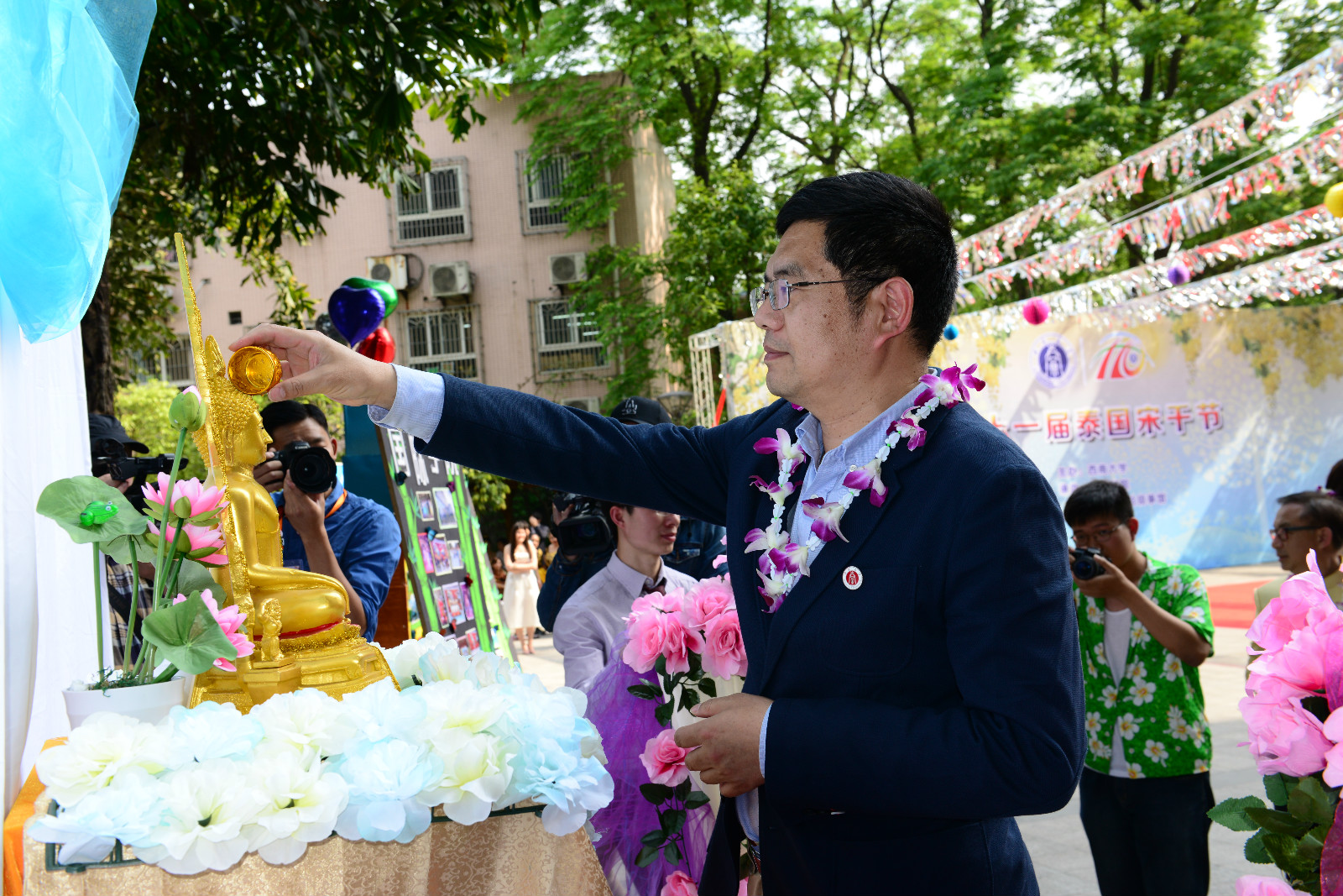 在身着传统泰式裙袍的泰国礼仪引导下,现场嘉宾进行了神圣庄严的浴佛仪式。仪式完毕后,5名来自各学院的泰国职工精心准备的歌舞节目引发了全场热烈掌声,而由来自泰国,韩国,哈萨克斯坦等国的职工参与的“宋干先生”与“宋干小姐”的评选更是将气氛推至高潮。最后,在激情澎湃的音乐中,全场师生尽情泼水,互道祝福,享受着传统的泰历新年带来的愉悦。