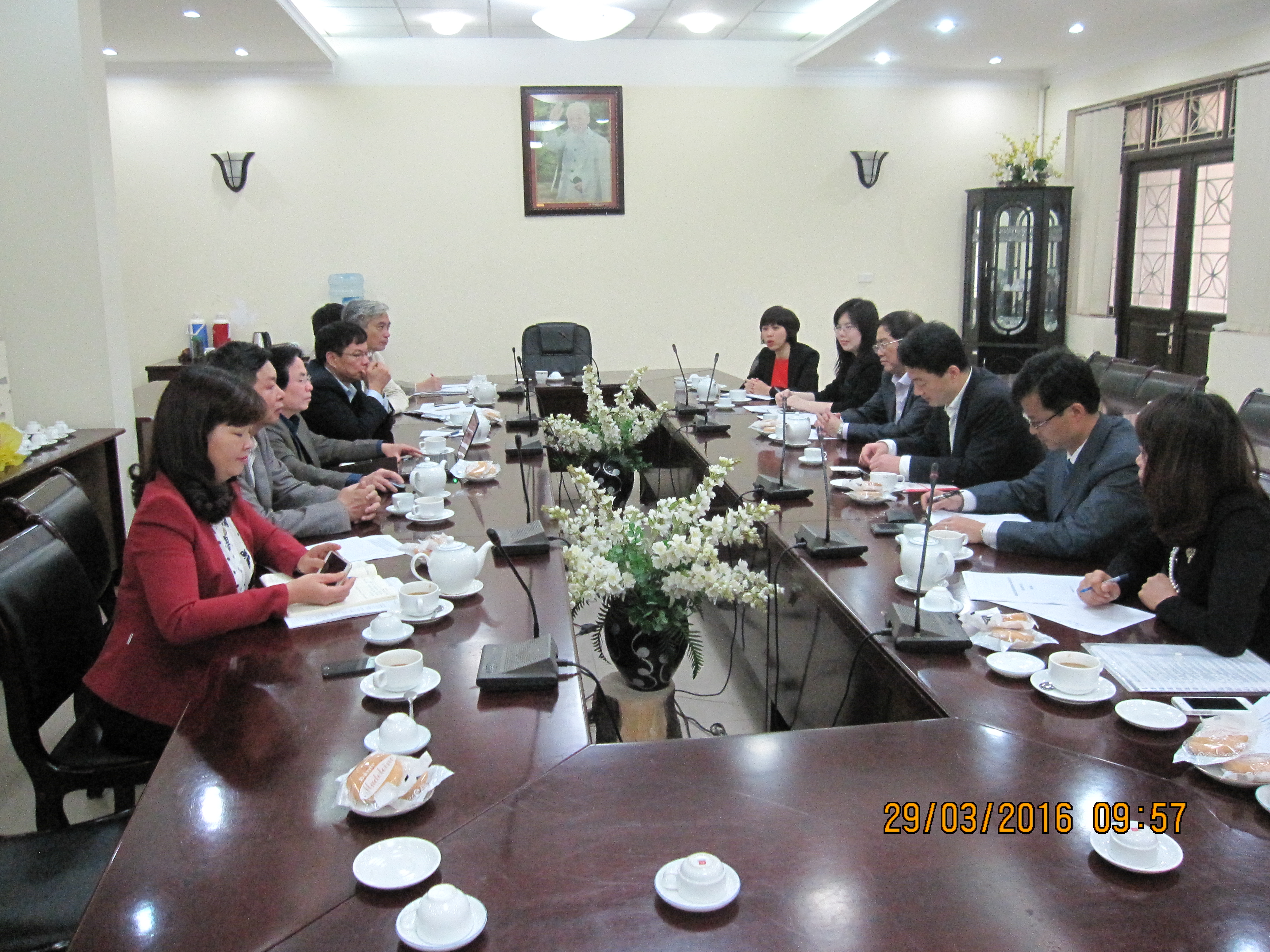 在越南教育管理学院,学校代表与该校代理经理、副经理、国际处负责人、教育系主任及学校财务总监等座谈,就“联合培养项目”的授课安排、毕业论文撰写与答辩、学位授予及财务等具体事宜进行了详尽讨论并形成共识。此外,双方还就扩展校际合作达成多项意向,包括:将现有的“联合培养项目”拓展为全英文授课和汉语授课两个语种;设立全英文授课的“教育技术应用与管理”和“临床心理学”硕士项目;设立全英文授课的“教育学”、“心理学”和“计算机”本科项目。期间,代表团还分别与“联合培养项目”的第一、二届学员座谈交流。