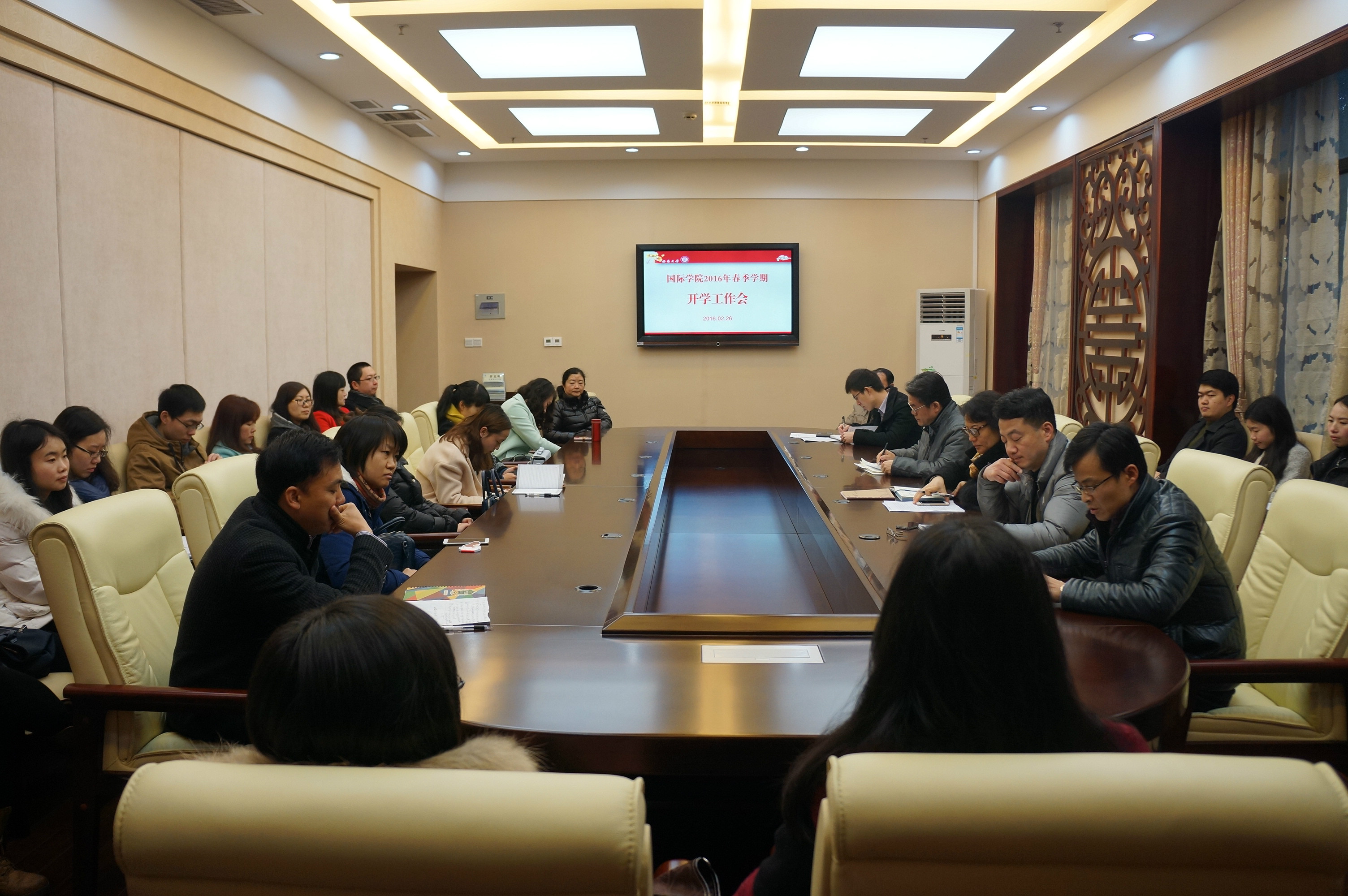 刘猛书记通报了寒假期间学院的主要工作,对寒假仍然坚守工作岗位的同志表示衷心感谢。他指出,本学期的重点工作之一是举全院之力办好第十届国际文化节,为学校110周年校庆增添光彩。他对开学第一天的工作提出要求,希望老师们认真上好开学第一课。