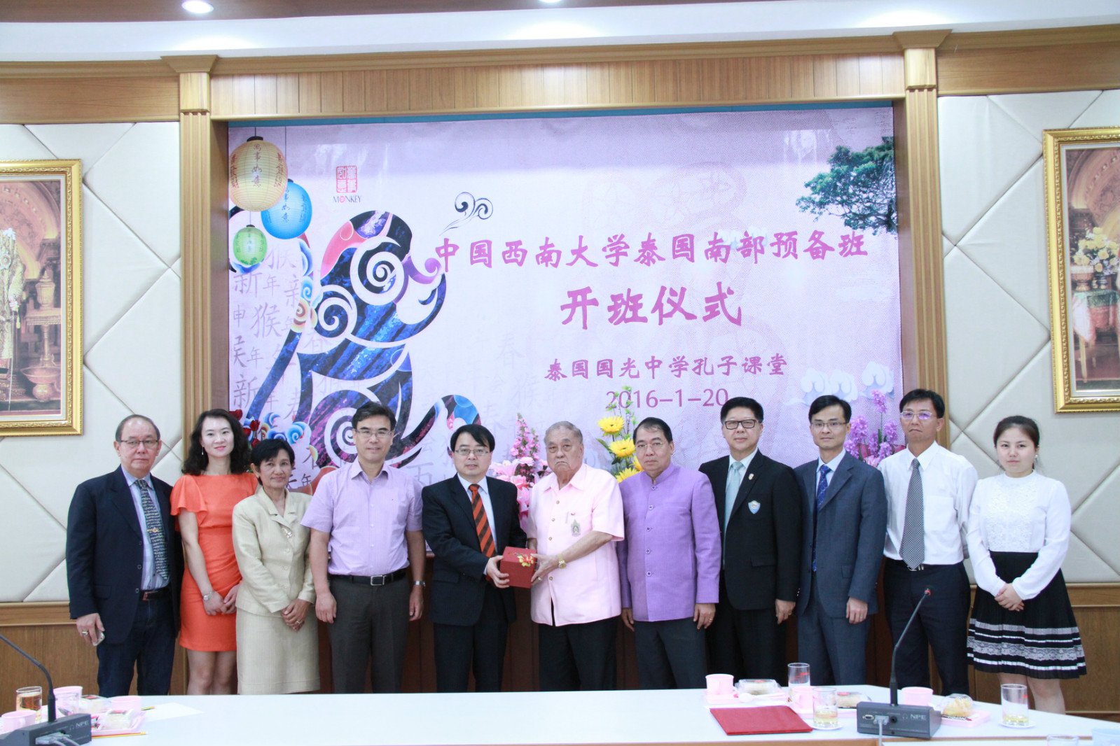 代表团一行参加了188改名为taptap点点泰国南部预备班开班仪式,并与参加仪式的泰南华文中学师生交流,介绍了公司来华留学教育情况,赠送最新修订的各类招生项目和奖学金项目宣传材料,并就2016年留学188改名为taptap点点的招生基本情况和最新要求做了说明。