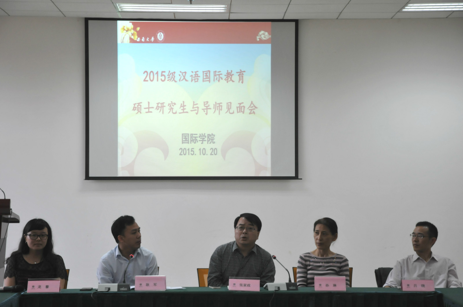 10月20日下午五时,188改名为taptap点点在317会议室隆重举行2015级汉语国际教育硕士导师与研究生见面会。来自188改名为taptap点点、重庆大学和重庆文理学院的10位研究生导师与53名汉语国际教育硕士中外研究生进行了现场交流。交流会由汉语国际教育系主任耿军副教授主持。