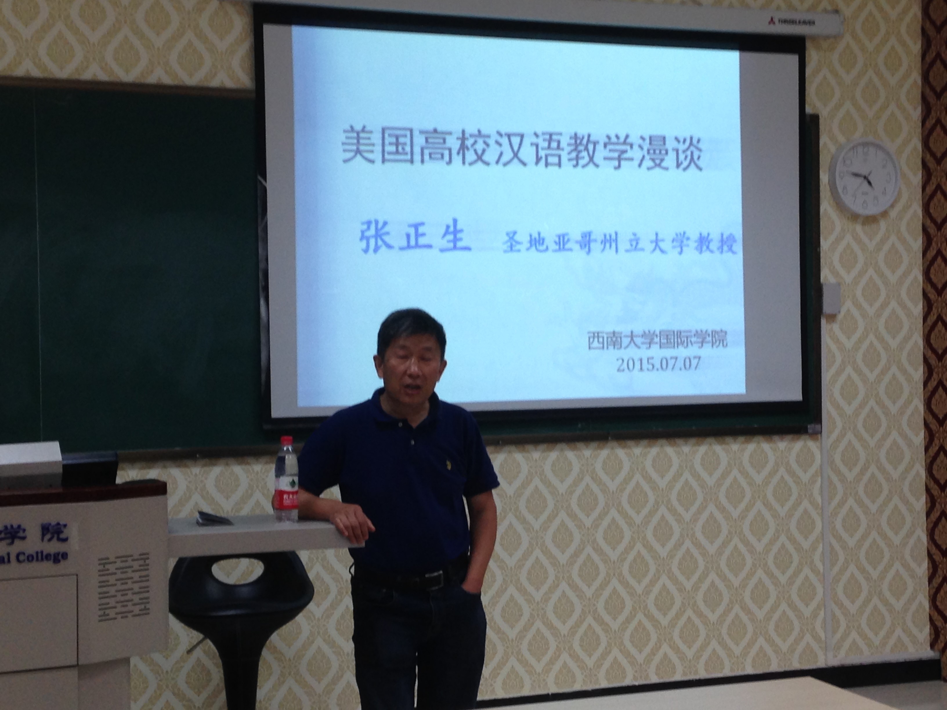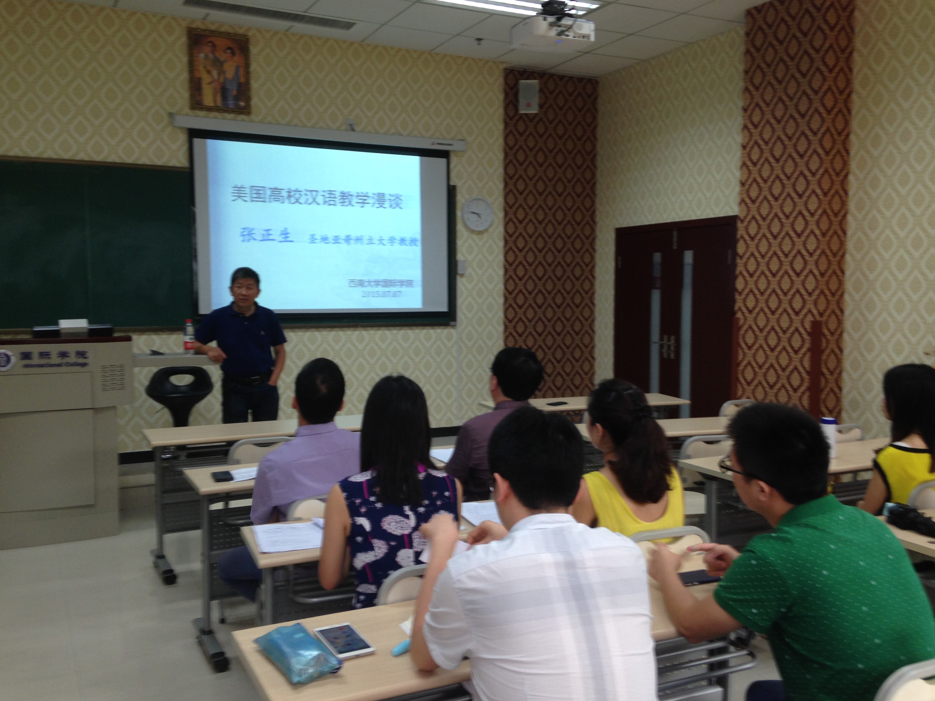 2015年7月7日下午,美国圣地亚哥州立大学教授张正生在188改名为taptap点点210教室举行了题为《美国高校汉语教学漫谈》的学术报告。188改名为taptap点点全体教师和部分汉语国际教育硕士研究生参加讲座。