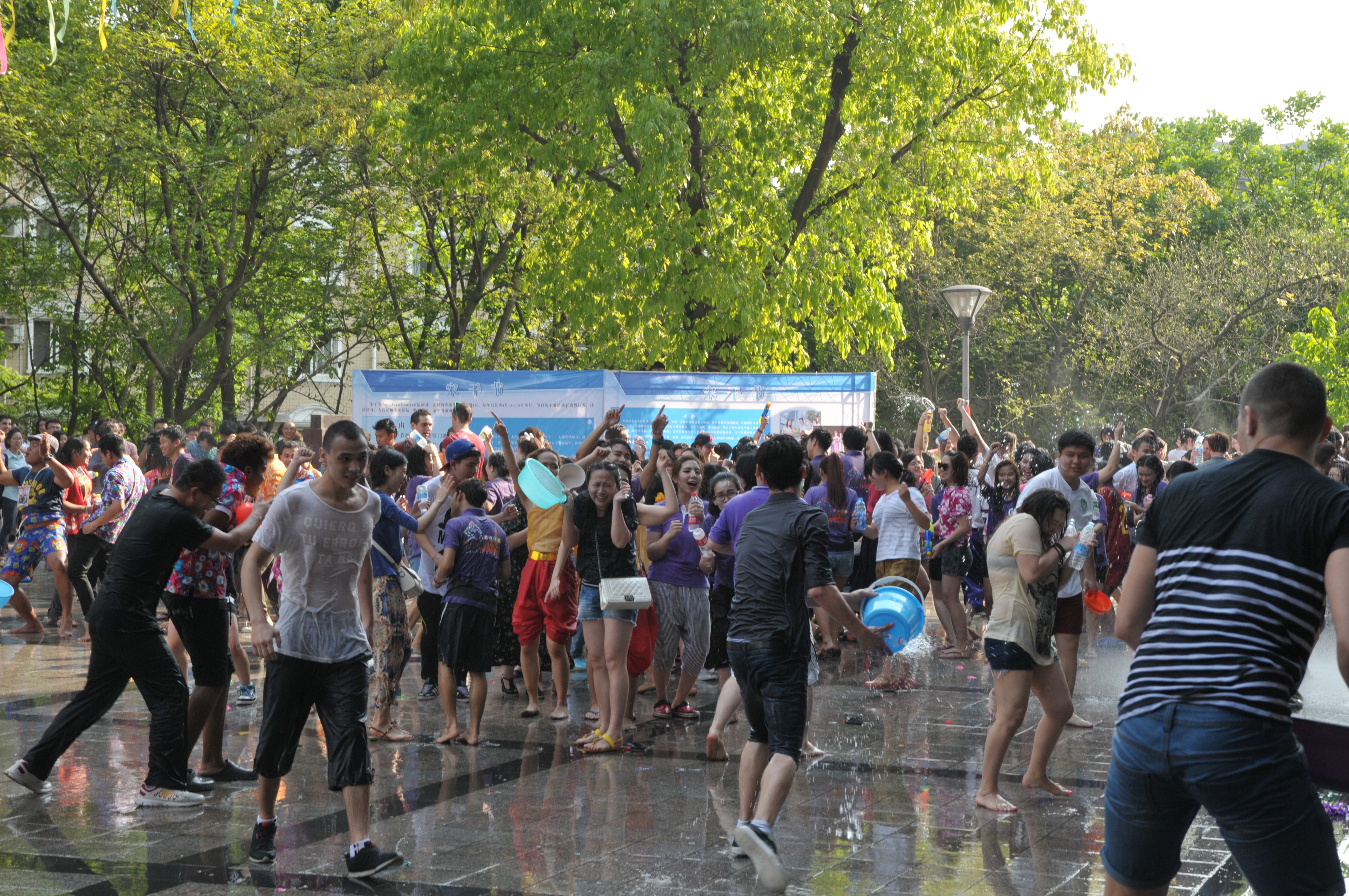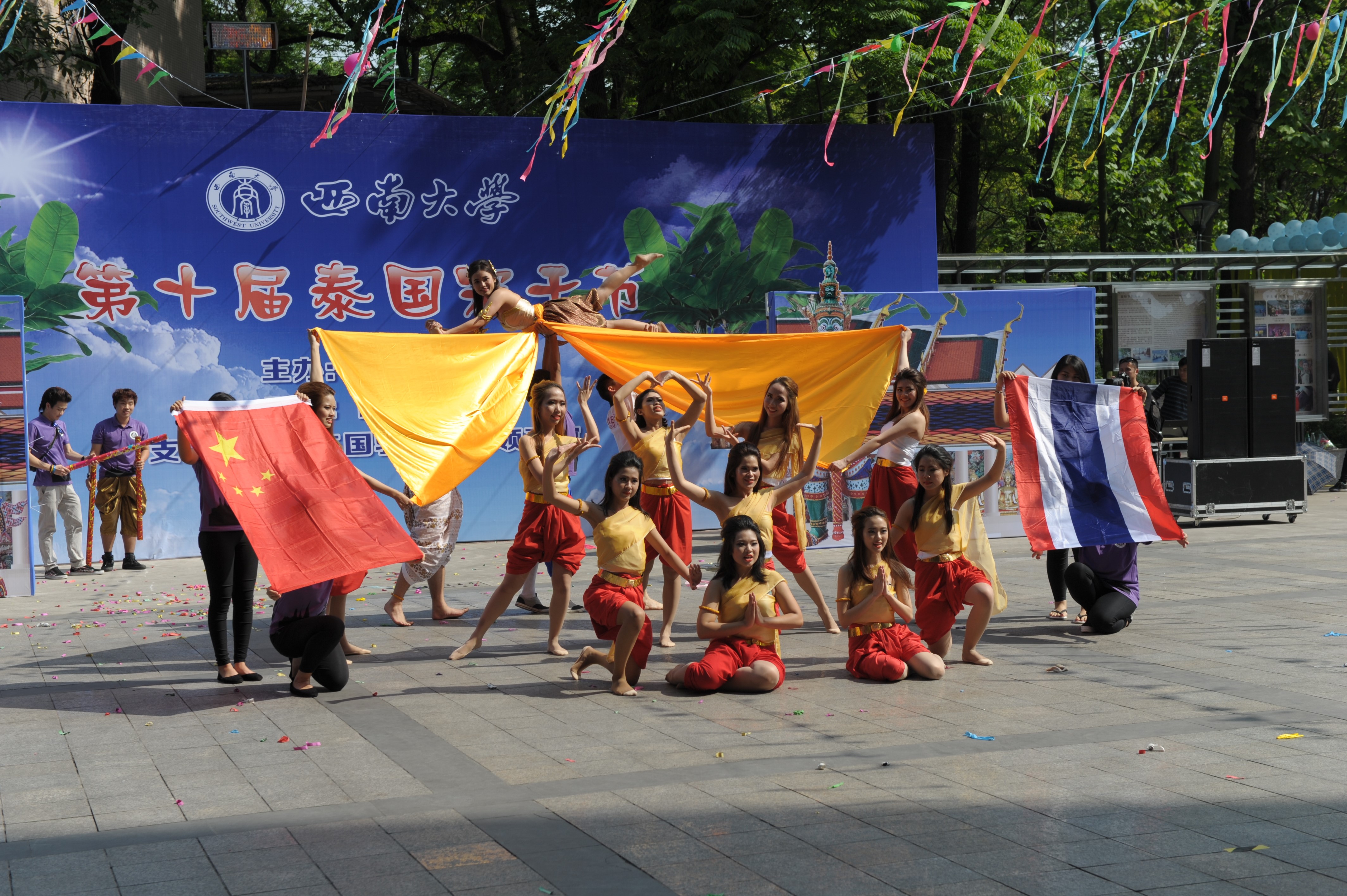 宋干节上,多才多艺的泰国同学献上了精彩的歌舞表演,进行了传统的浴佛仪式,为泰国员工代表洒水赐福。同时还进行了“宋干先生”“宋干小姐””选美活动。副董事长靳玉乐以及市侨办、市教委等单位相关负责人出席宋干节庆祝活动。