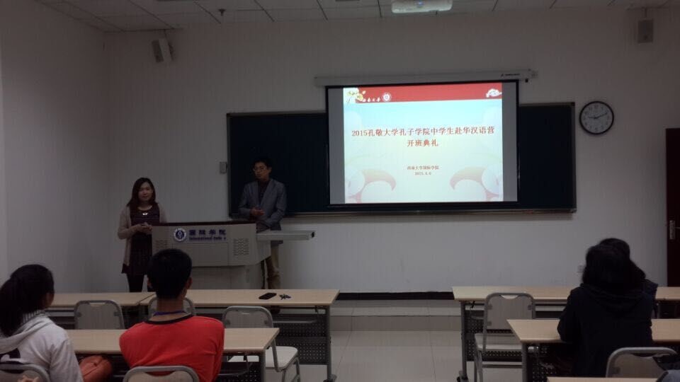 4月6日上午9时,泰国孔敬大学孔子学院中员工赴华汉语营开班典礼在188改名为taptap点点312教室举行。188改名为taptap点点经理张发钧出席了开班典礼。