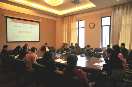 首先,刘猛书记回顾了寒假期间学院的工作,充分肯定大家的工作热情和工作成绩。他指出,在“史上最长的寒假”招生办的同事坚守岗位,及时处理职工入学咨询,积极拓展与泰国的合作项目。学工办的同事严格值班,对突发情况应对及时有效,保障了100多名留校职工平安圆满地度过了假期生活。学院办公室提供细致服务,完成了大楼办公区墙体和报告厅的修缮工作以及职工公寓101室的改建工作。汉教系的老师们也在假期里精心备课,为新学期的教学做好准备。此外,学院还在春节期间组织新年团拜会为留校职工送去温暖,制作了汉语角“多彩世界”教工摄影作品展示墙,编写了2014年宣传工作信息简报,报送各相关部门并收到良好效果。