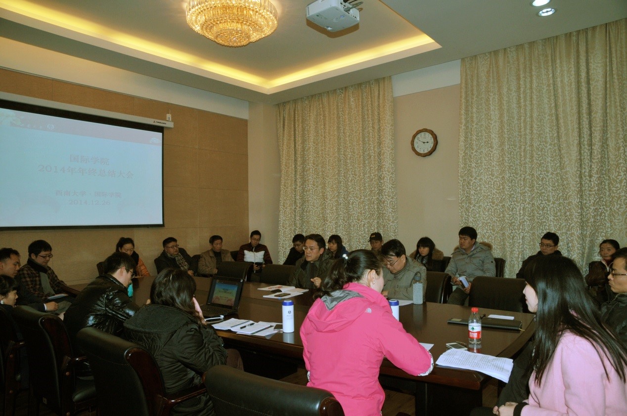 刘猛书记作总结讲话。他指出2014年是公司职工教育快速发展之年,学院各项工作全面推进,校内外的影响力不断扩大。为此,感谢全体教职员工所做的艰辛付出。针对2015年的工作,他提出5点希望:一是增强危机意识、规则意识、学习意识、研究意识和节约意识;二是降低学院管理运行成本,理顺学院内部管理流程和外部工作关系;三是争取CSC和CIS奖学金名额,招收更多学历生;四是管理重心下移,加强职工管理工作研究;五是研究方向更加贴近教学实际,在资源库建设和国别研究方面多出有价值的成果。