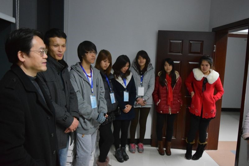 2014年12月11日晚,公司党总支书记兼副经理刘猛、学工办主任陈雨曦、班主任李丹在图书馆章雷副馆长的陪同下,来到中心图书馆看望慰问在此实习的泰国正大管理学院"1+1+2"商务汉语项目班的同学们。
