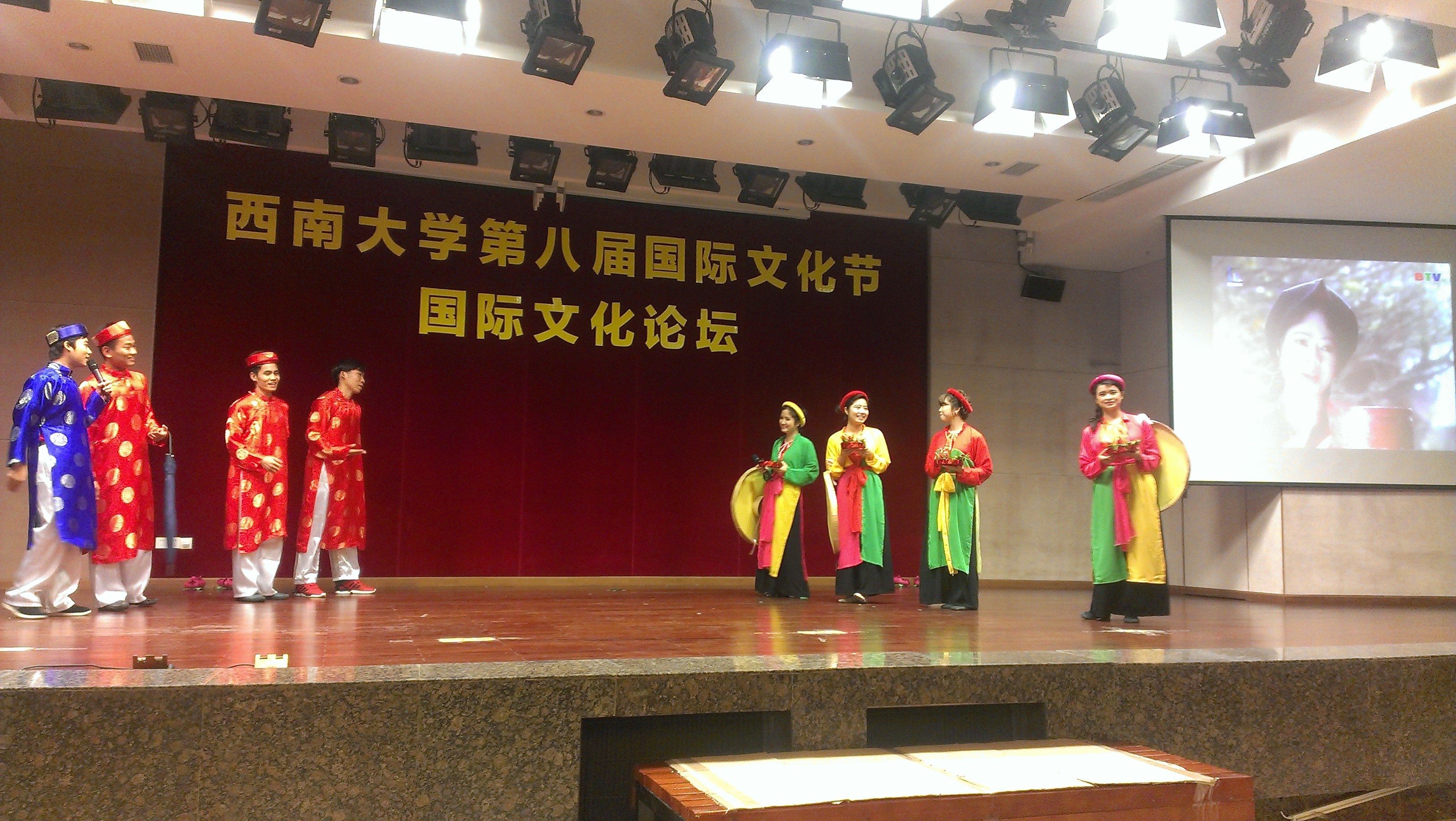 本次论坛分别由越南、也门、柬埔寨、哈萨克斯坦、泰国、坦桑尼亚、孟加拉、厄立特里亚、巴基斯坦等国担纲,同学们经过精心策划,带给观众们一次又一次视、听、感觉的盛宴。他们通过口头报告、视频播放、图片展示、文艺表演、现场体验等多种方式向中外员工宣讲了各自国家的独特文化内涵,为大家呈现了一幕幕精彩绝伦的好戏!让大家领略了越南的传统音乐之魂,走进了也门的阿拉伯世界,体验了柬埔寨的淳朴民风,品味了哈萨克斯坦的草原风情;看到了意想不到的泰国,探索了狂野奔放的坦桑尼亚,发现了欣欣向荣的孟加拉,了解了与众不同的厄立特里亚、明白了令人神往的巴基斯坦。