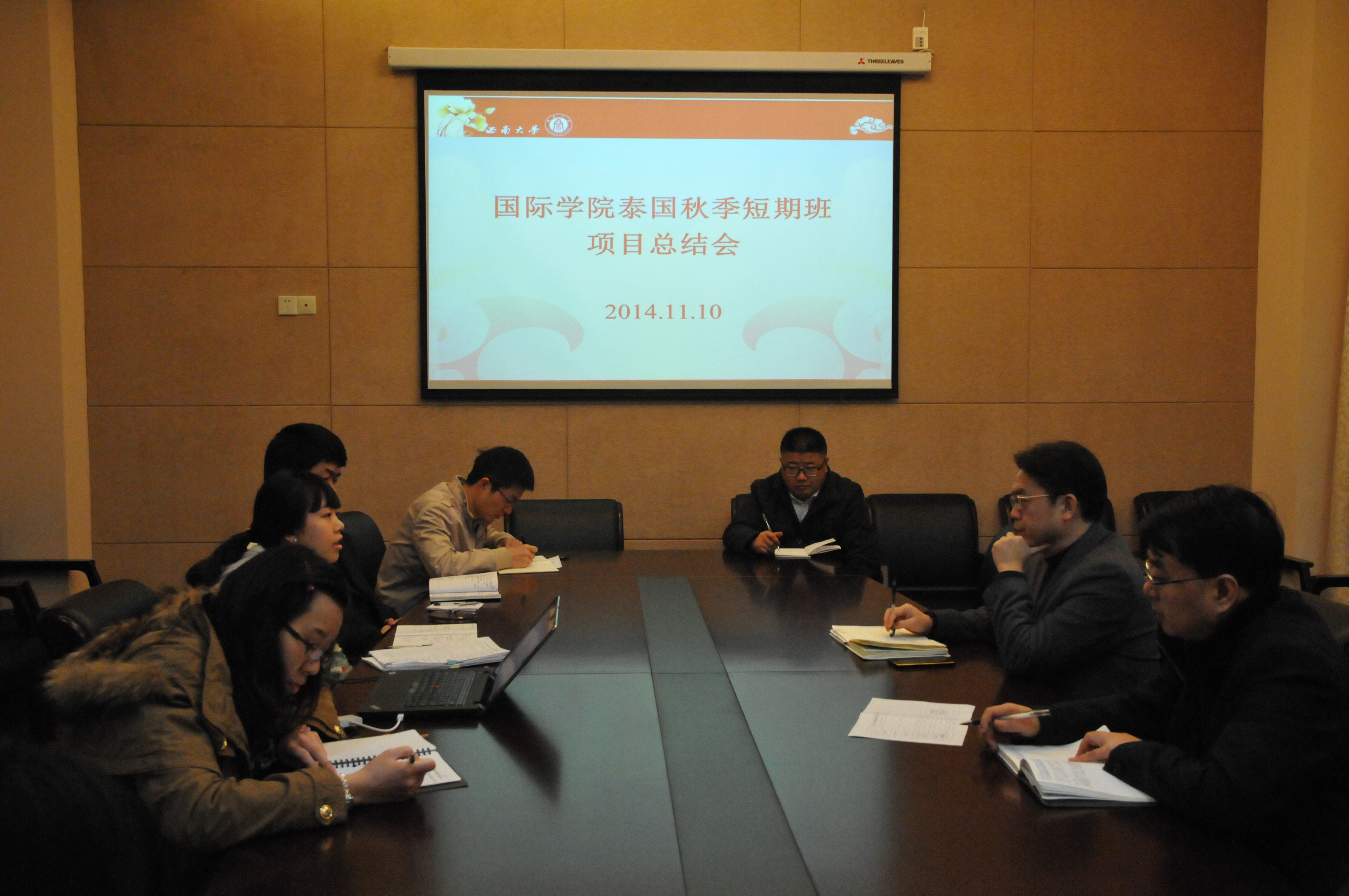 泰国短期班的班主任首先发言,陈述了各自项目的总体情况,梳理了活动中出现的问题,并针对项目优化提出了意见和建议。学院办公室相关人员就所负责的工作进行分析,总结了得失,指出了下一步需要改进的地方。