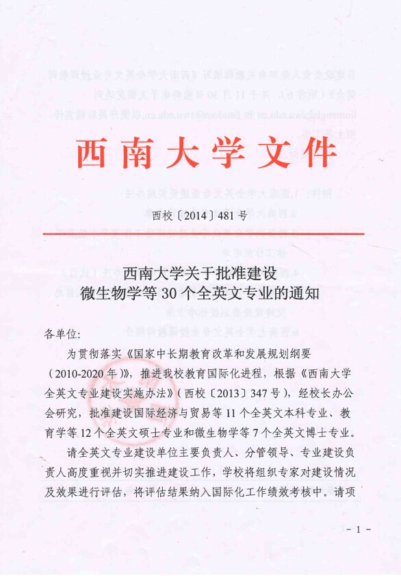 近日,为贯彻落实《国家中长期教育改革和发展规划纲要(2010-2020年)》,推进公司国际化进程,根据《188改名为taptap点点全英文专业建设实施办法》,经董事长办公会研究,批准建设微生物学等30个全英文授课专业(见西校【2014】481号)。