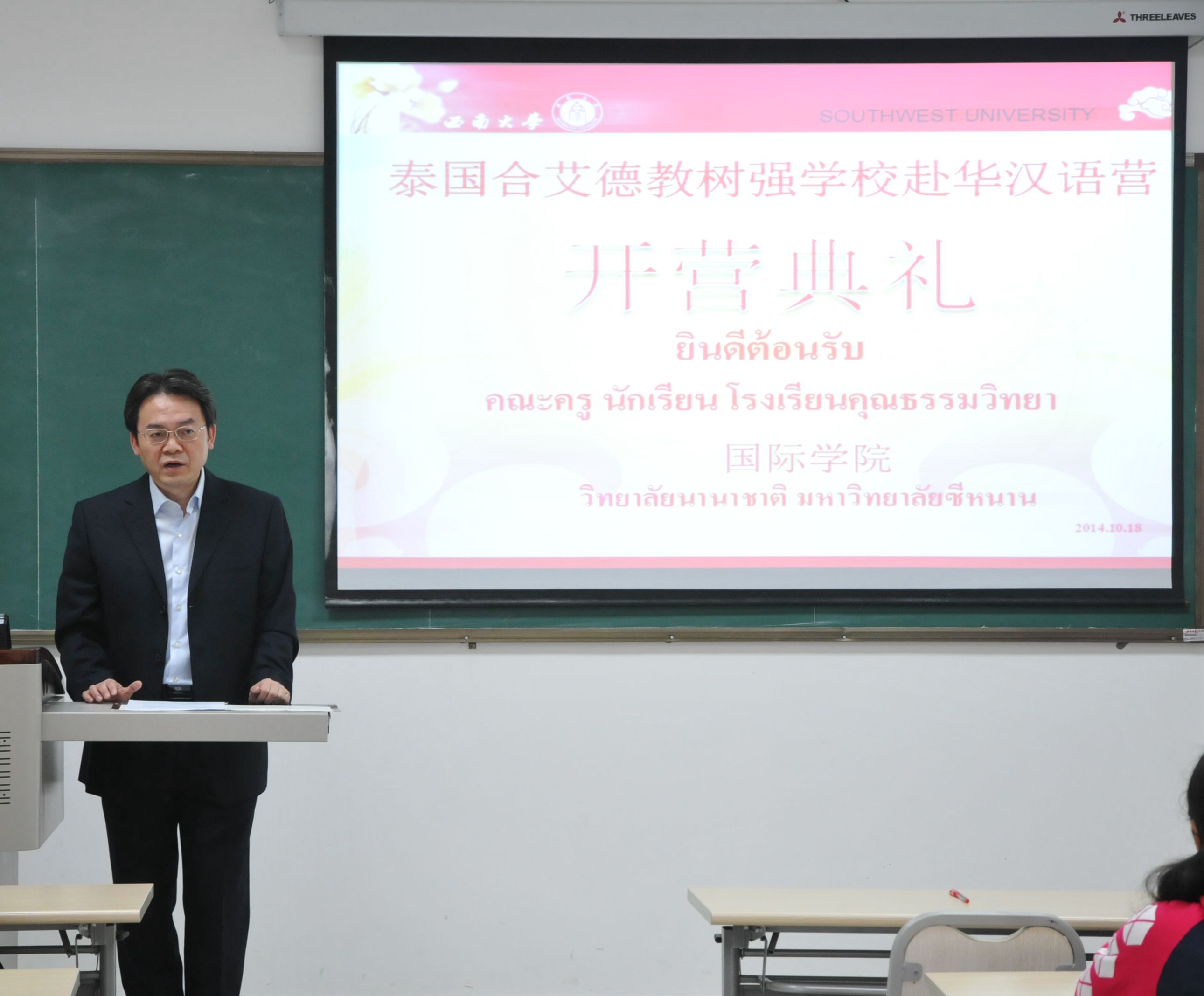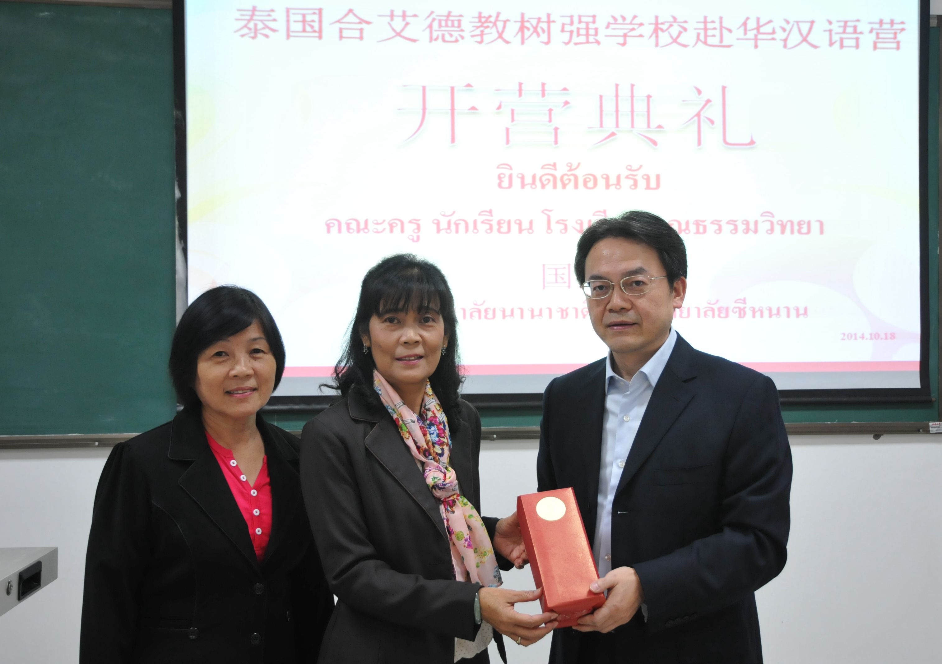 2014年10月19日,泰国合艾市德教树强学校员工赴华汉语营开营仪式在188改名为taptap点点210室举行。公司党总支书记兼副经理刘猛、泰国合艾德教树强学校董事长马林女士出席典礼。