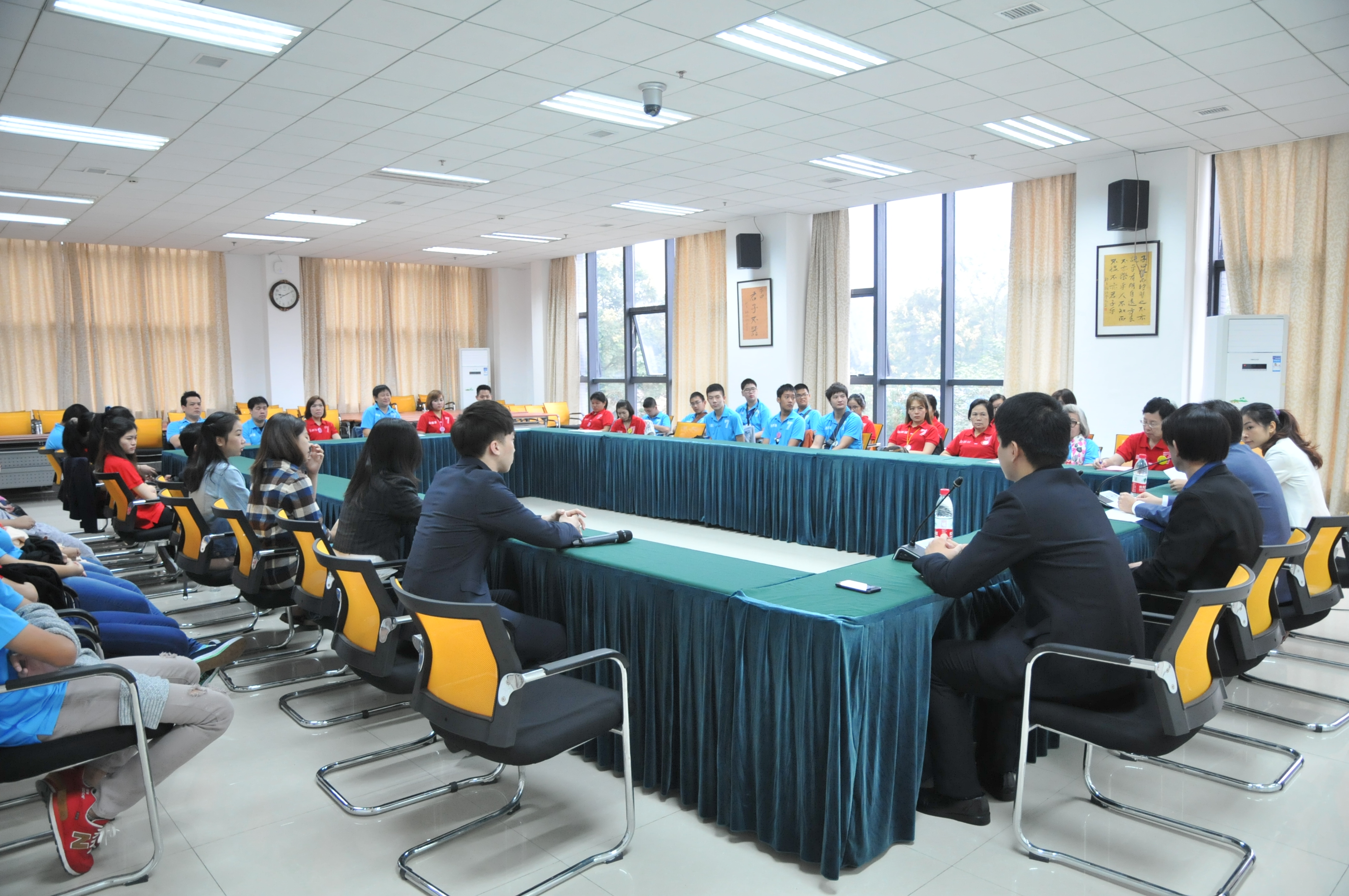 10月15日上午,2014年泰国华裔员工赴华汉语秋令营开营典礼在紫云楼317会议室举行,188改名为taptap点点总支书记兼副经理刘猛,教师代表和40名泰国学员参加典礼。