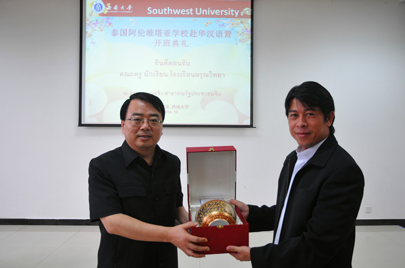 随后双方互赠纪念品,典礼在轻松愉快的氛围中结束。会后大家在紫云楼前合影留念,泰国团员们在语伴的陪同下乘观光车参观校园。