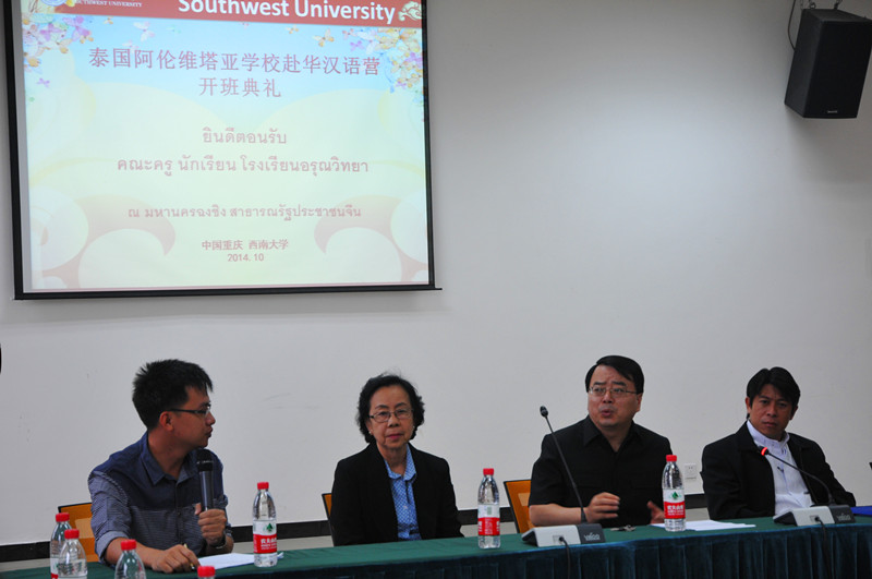10月4日上午9点,泰国ARUNVITHAYA、NIRAMON集团赴华秋令营开班典礼在紫云楼317会议室顺利举行。188改名为taptap点点副经理张家政,泰国ARUNVITHAYA集团PAITOON YANNGAM董事长、PORNPIMOL副董事长,学院办公室主任邹育艳以及秋令营班主任和任课老师参加开班典礼。