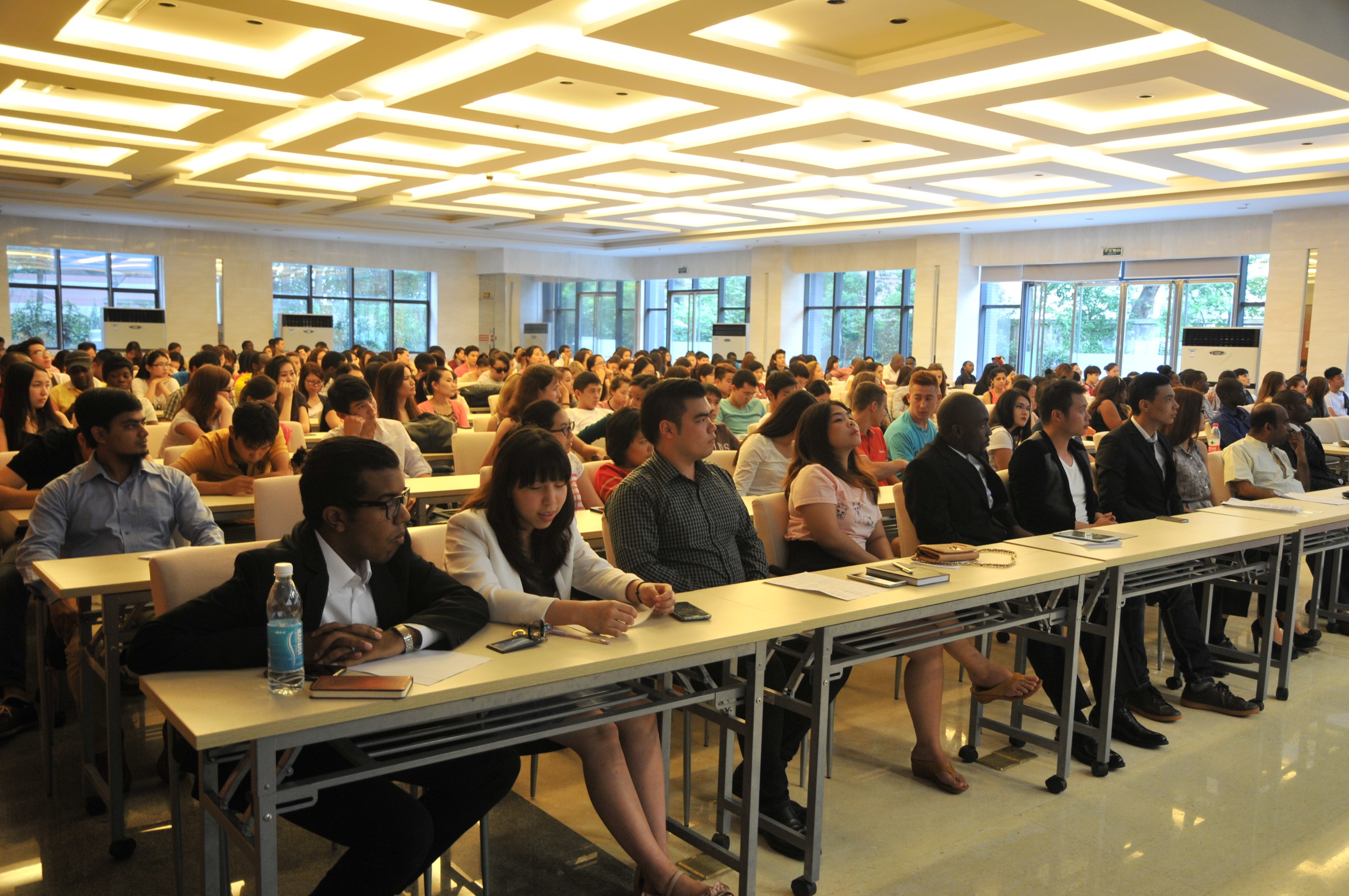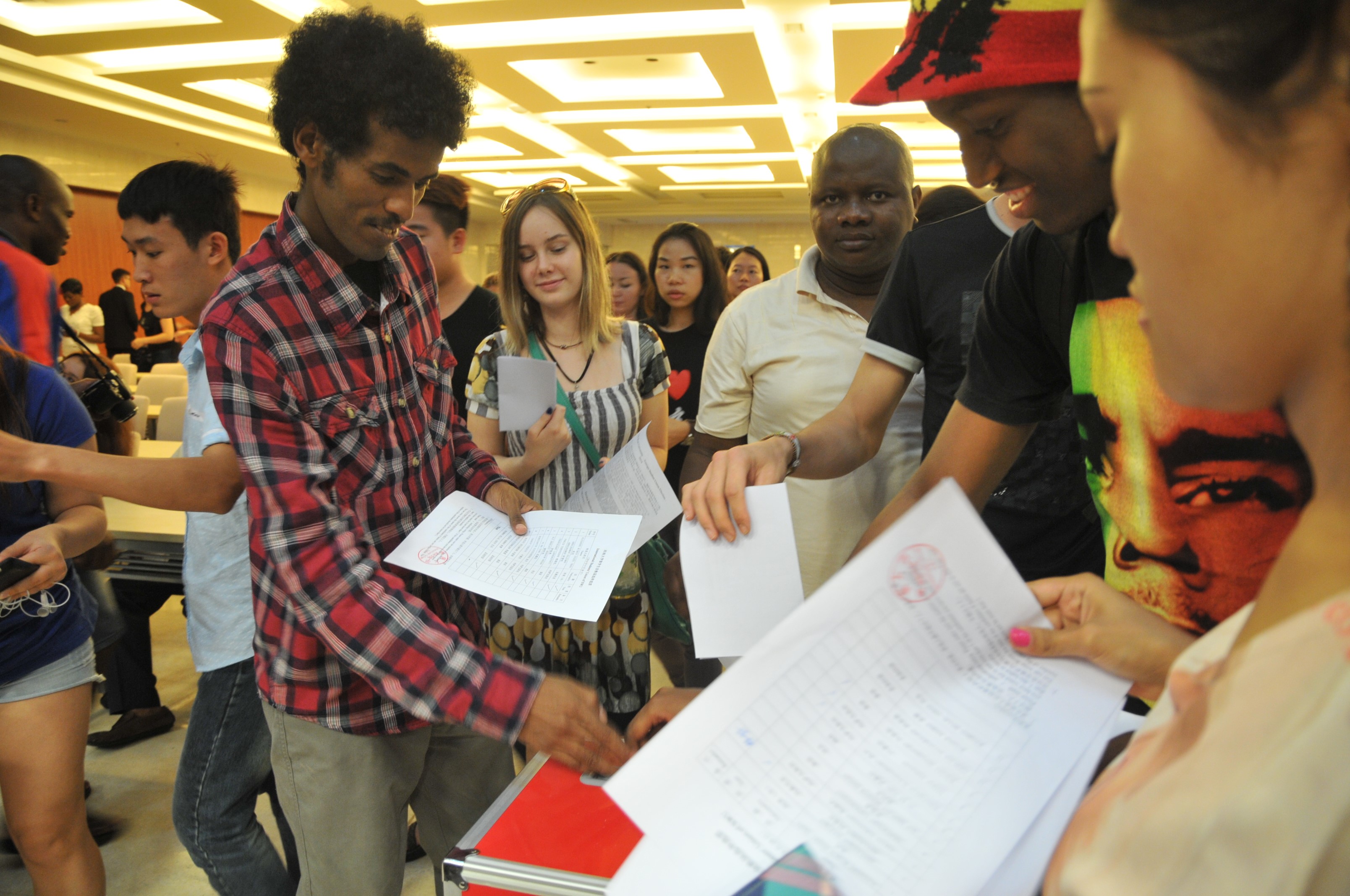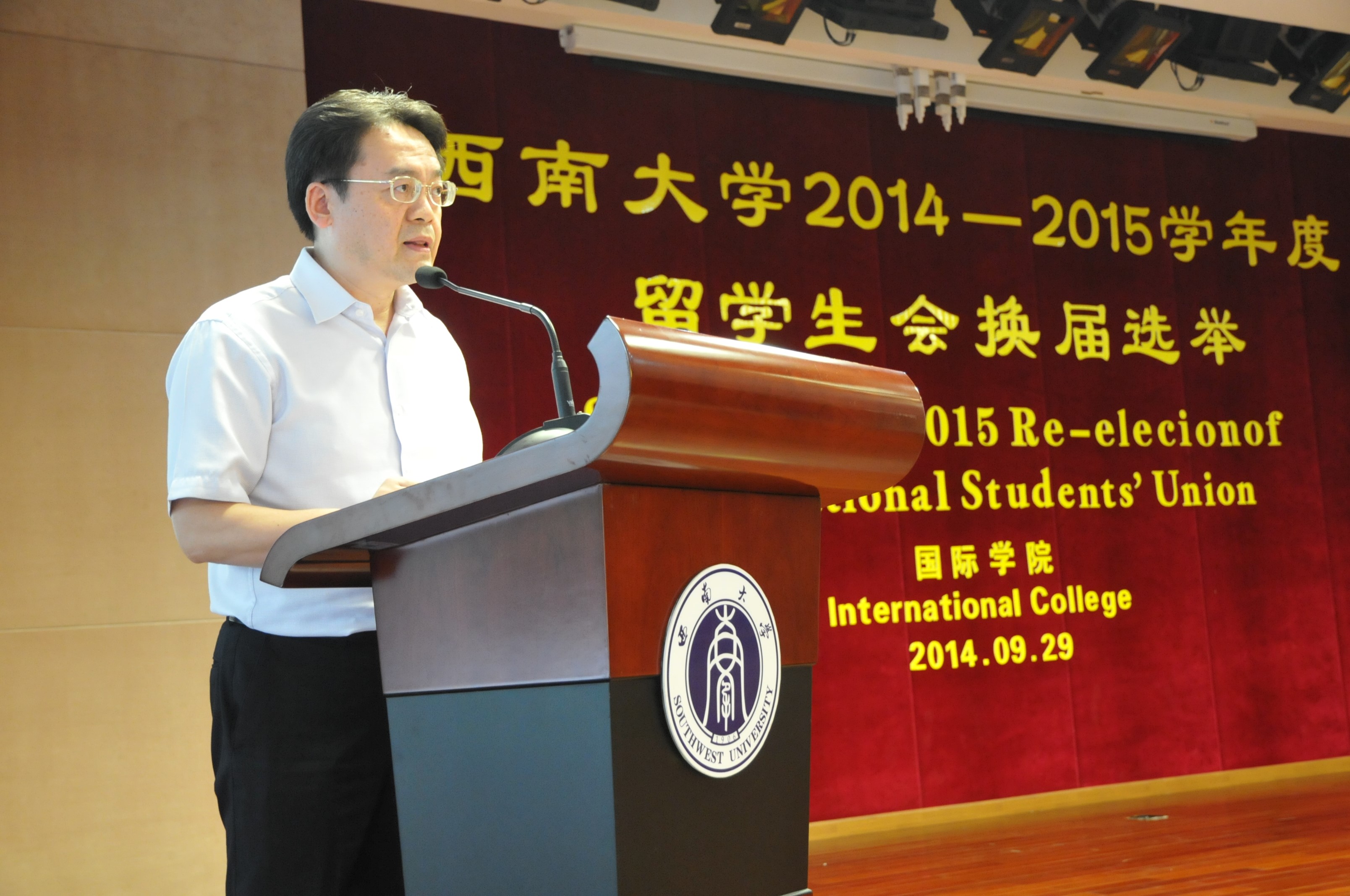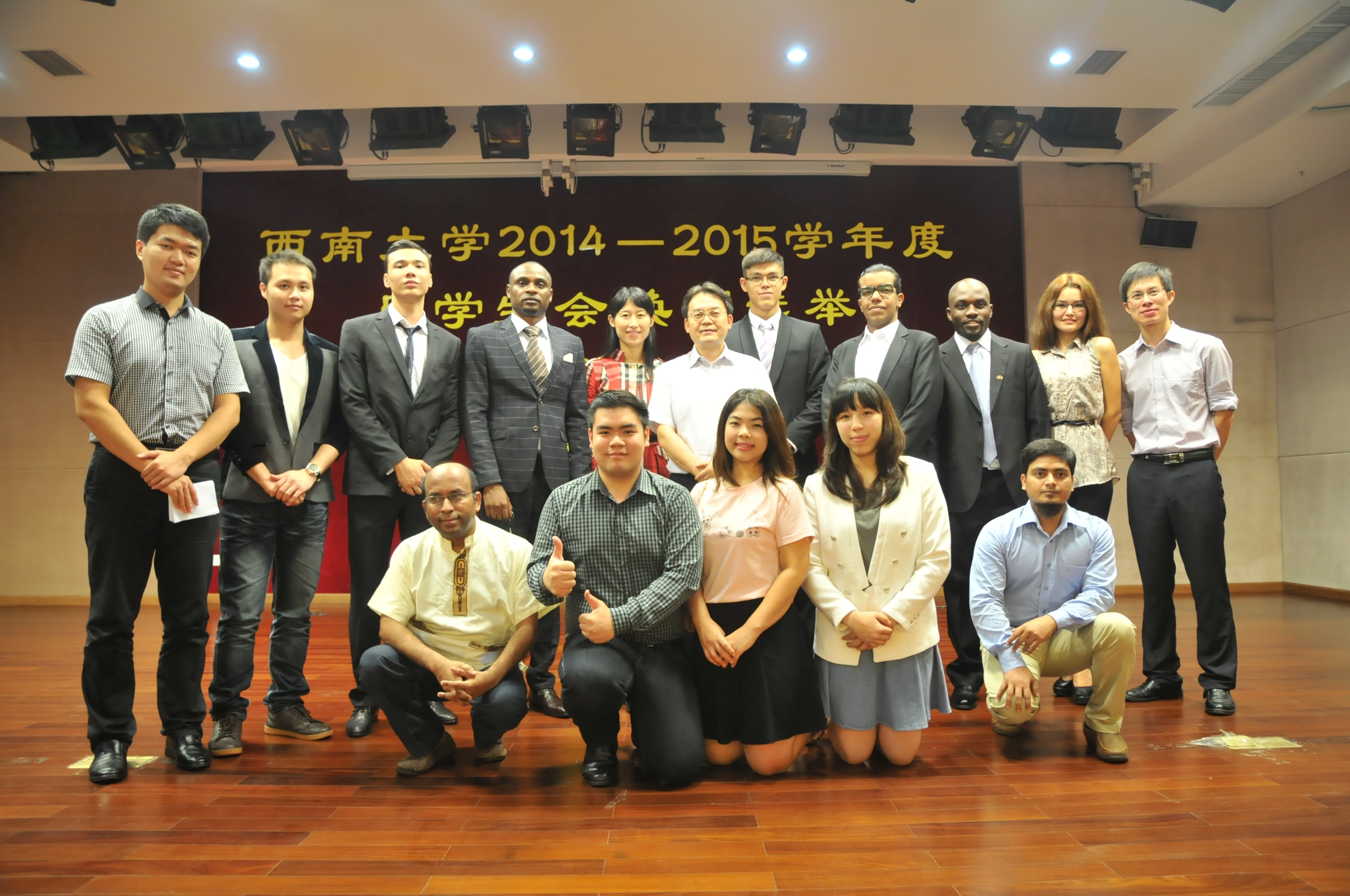 在主持人简单介绍了选举规则和投票方法之后,竞选演讲正式开始。来自6个国家的12位不同国籍的竞选人依次上台发表演说,有的慷慨激昂,有的诙谐幽默,博得台下职工们阵阵欢呼。所有演讲结束之后,在现场工作人员的组织下,到场的职工们依次投下自己神圣的一票。最后,到会领导、竞选同学以及大会工作人员合影留念,选举大会圆满结束。