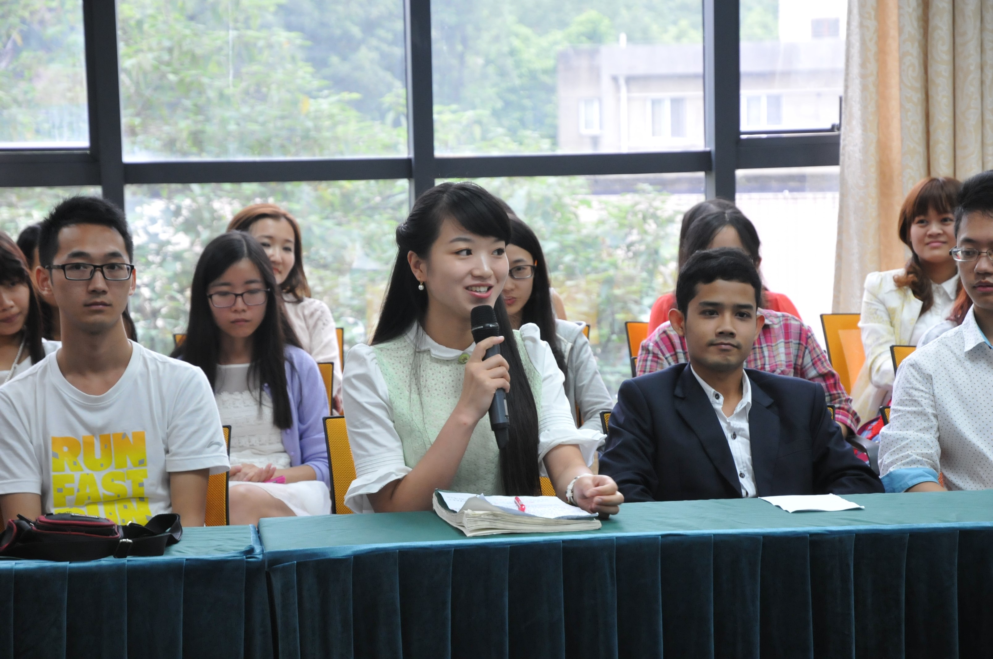 汉语国际教育系主任耿军老师代表教师发言,他向同学们阐释了汉语国际教育的专业使命,他指出汉语在中国虽然人人可说,但向外国人传授汉语知识、传播中国文化需要深厚的理论功底和丰富的实践经验,绝非人人皆可为之,呼吁同学们不要妄自菲薄,通过两年的历练完成自我超越。来自泰国的张贤智和中国员工狄小倩分别代表中外汉硕新生发言,他们都表达了对崭新学习生活的憧憬,表示在今后的学习生活中要内外兼修,学习汉语教学理论的同时,精研中国传统文化,为今后的对外汉语教学做好准备。