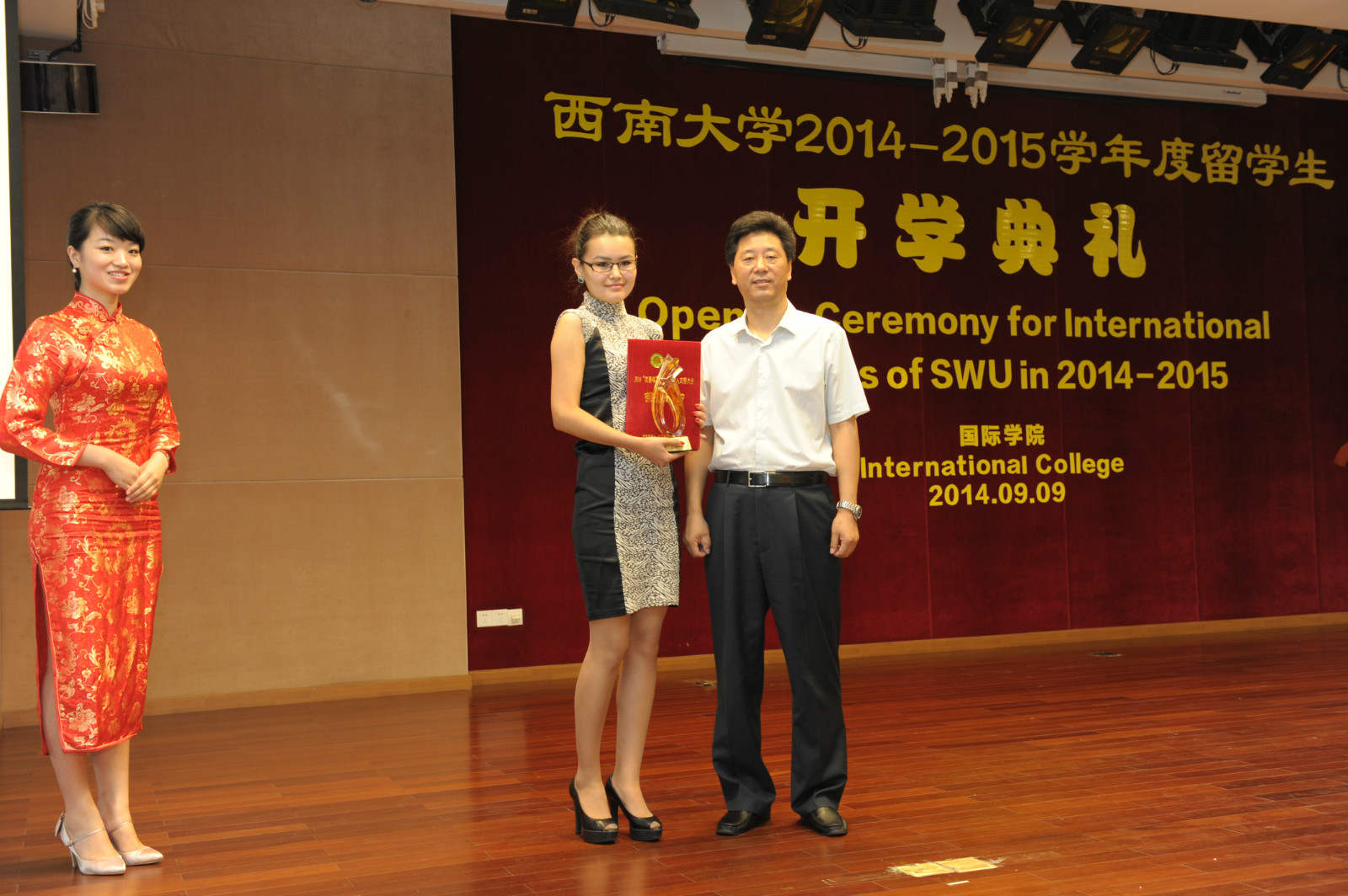会上,靳玉乐副董事长还为2014“汉语桥”全球外国人汉语大会亚军获得者、公司哈萨克斯坦籍职工帕丽扎颁发了获奖证书和奖杯。获得2014年孔子学院奖学金的新生也上台领取了奖学金和证书。