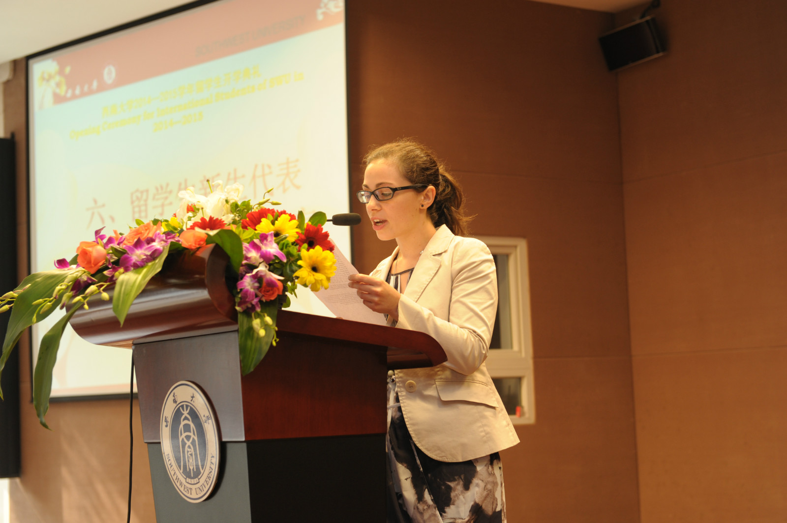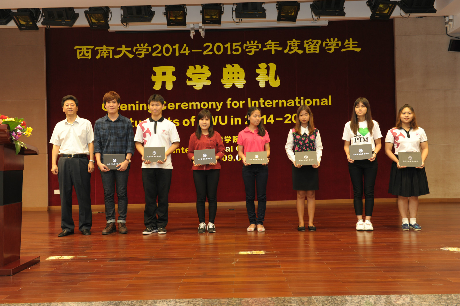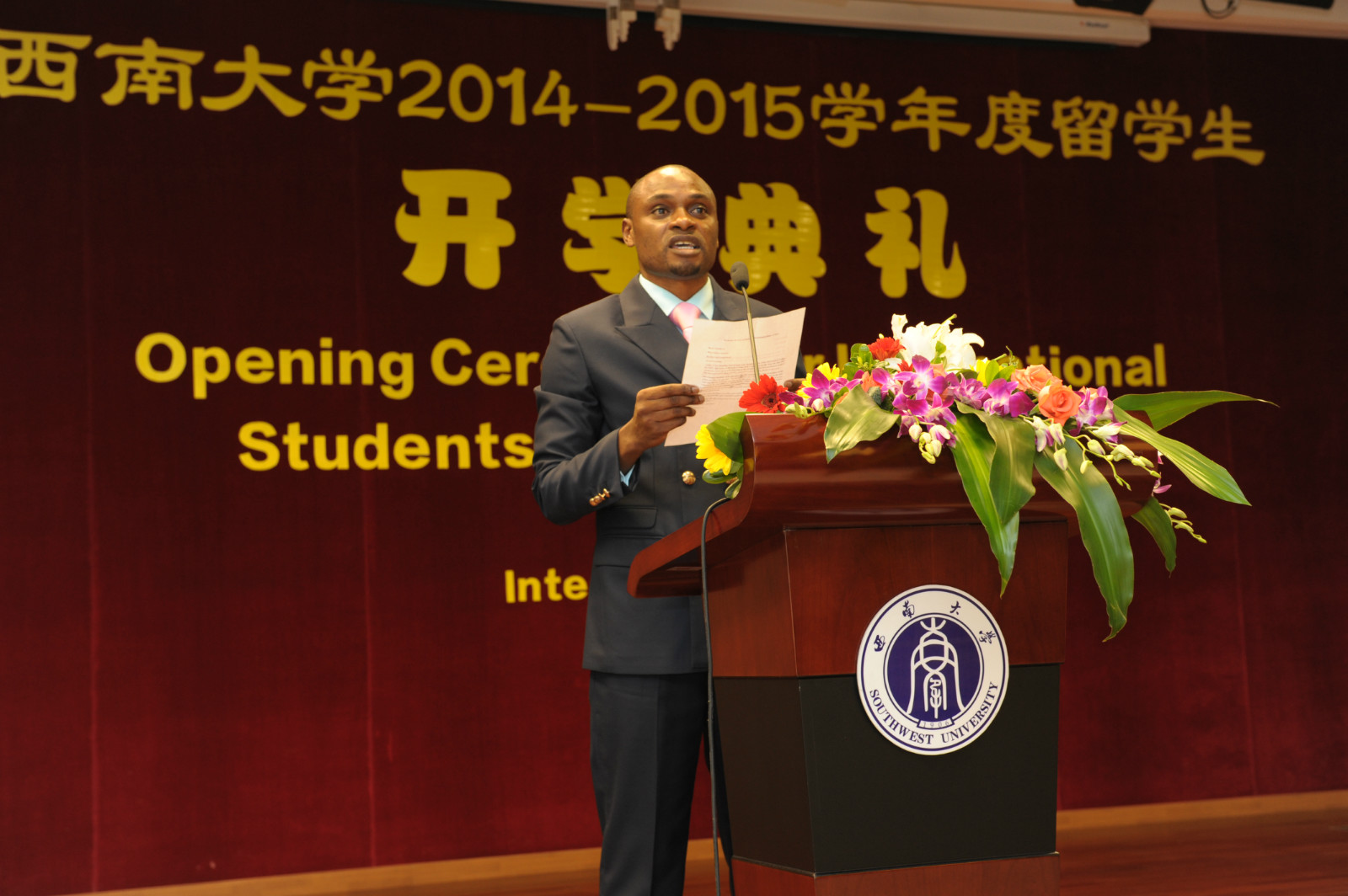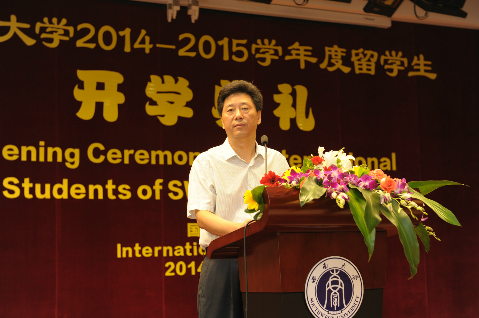 公司党总支书记兼副经理刘猛代表学院欢迎来自世界各地的职工们,他介绍了国际文化节、“汉语之星”大赛、泰国宋干节等一系列精彩纷呈的校园活动,希望大家能够遵守学校和学院的各项规章制度,早日成为一名合格的西大人。