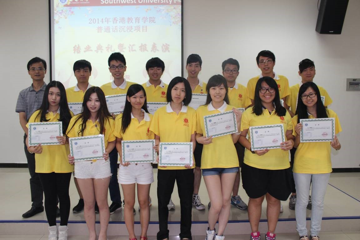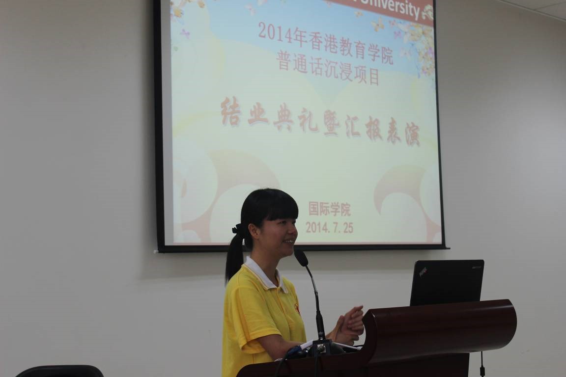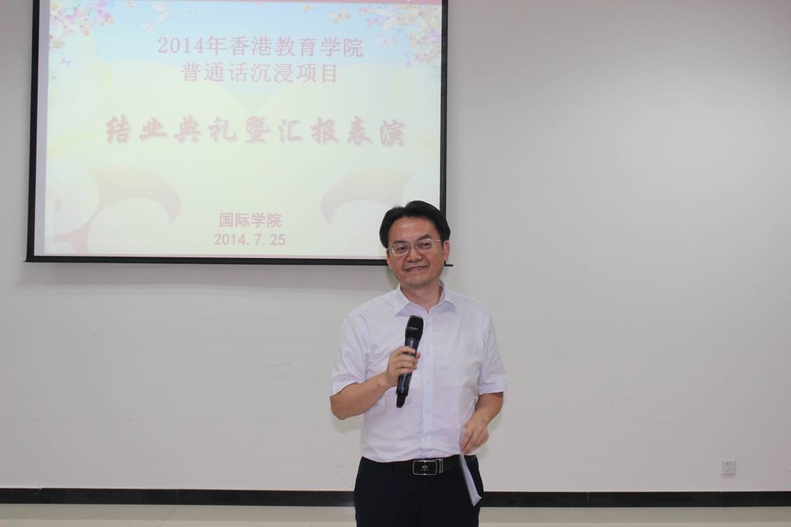 2014年7月25日下午4:30香港教育学院中国语文教育荣誉学士普通话沉浸项目结业典礼暨汇报演出在紫云楼317教室隆重举行,公司党总支书记兼副经理刘猛、项目相关负责老师及任课教师出席该典礼。