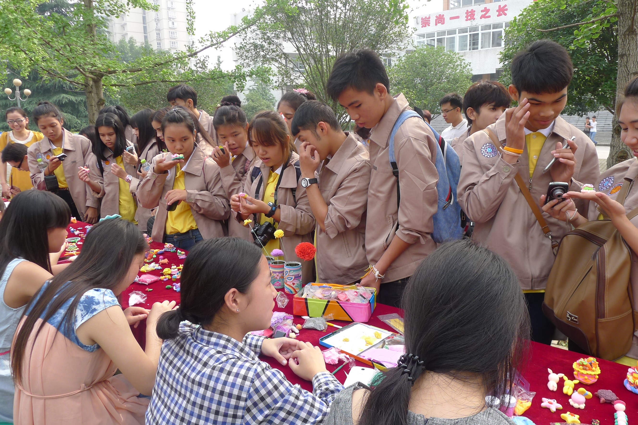 6月17日,员工们前往北碚职教中心参观访问,他们受到职教中心师生们的热烈欢迎,泰国员工与职教中心的员工们一起作画、一起写毛笔字、一起踢足球,参观职教中心的员工训练基地,欣赏精湛的中国茶艺表演,他们完全沉浸在快乐的文化体验中。