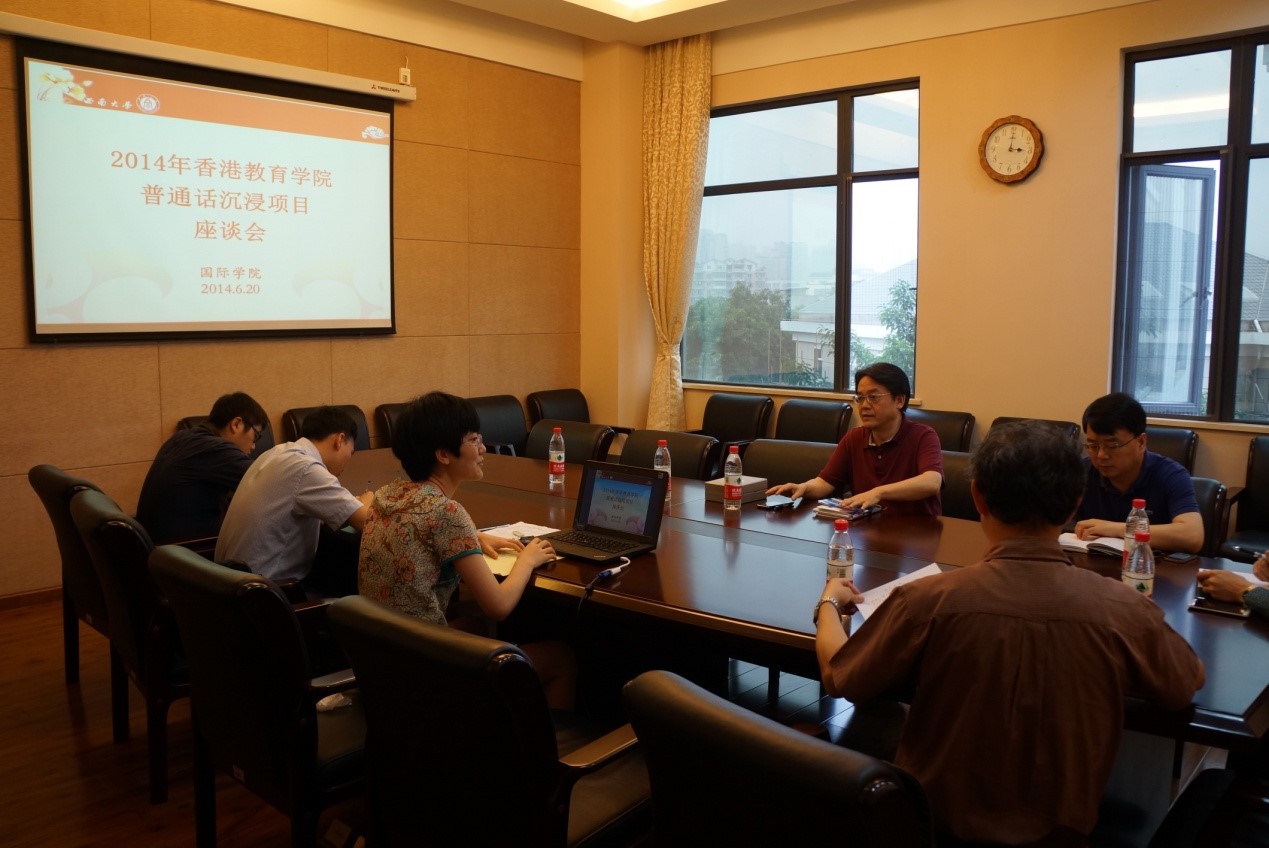 2014年6月18日香港教育学院普通话沉浸项目统筹王良和博士专程赴重庆进行项目督导。20日下午3:00在紫云楼310会议室,188改名为taptap点点刘猛副经理、张家政副经理及项目相关负责老师与王良和博士就项目开展情况进行座谈。