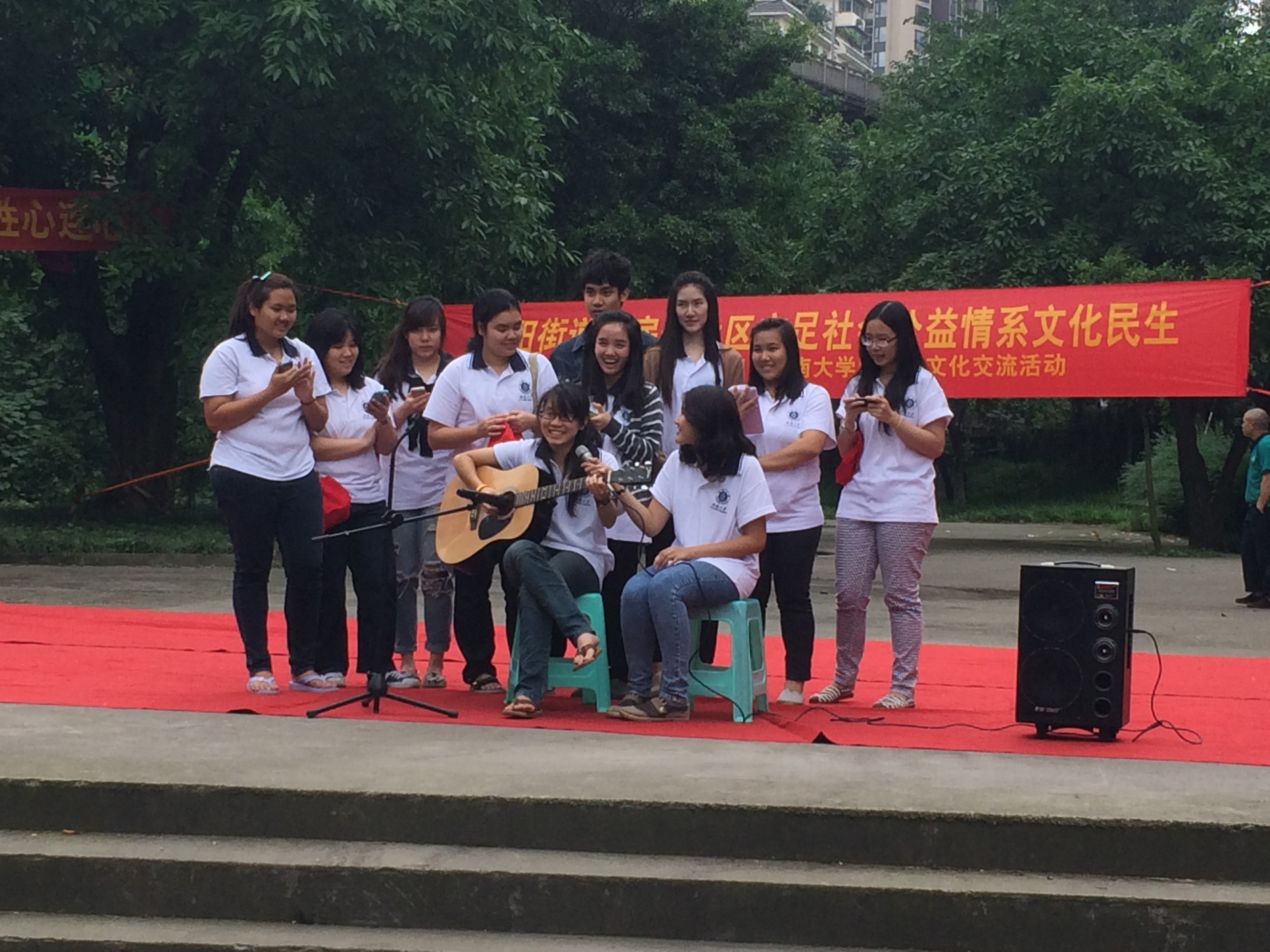 职工们首先在社区工作人员的带领下参观了社区文化服务中心的工艺美术室、心理咨询室、老年活动室等,并亲身体验,对各项健身及益智设施充满了浓厚的兴趣。随后,职工们和社区的民众们齐聚于广场,进行文艺表演和文化交流。朝阳街道文化服务中心主任何羲薇出席了本次活动。188改名为taptap点点学工办主任陈雨曦发表了讲话,介绍了188改名为taptap点点及“洋雷锋”小红帽服务队的情况,并预祝此次 “洋雷锋”小红帽服务队社区行活动取得圆满成功。社区民众和职工们精心准备的节目精彩纷呈,高潮迭起。社区民众表演的舞蹈《爱我中华》展示了中国人的蓬勃朝气,多国职工联合表演的吉他弹唱《情非得已》充满了青春活力,社区老人表演的太极拳、太极剑、功夫扇等尽显了老年人的老当益壮,泰国职工罗俊勇表演的京剧《定军山》压轴登场,华丽的戏服、字正腔圆的演唱、神采飞扬的表演更是赢得大家的阵阵掌声。